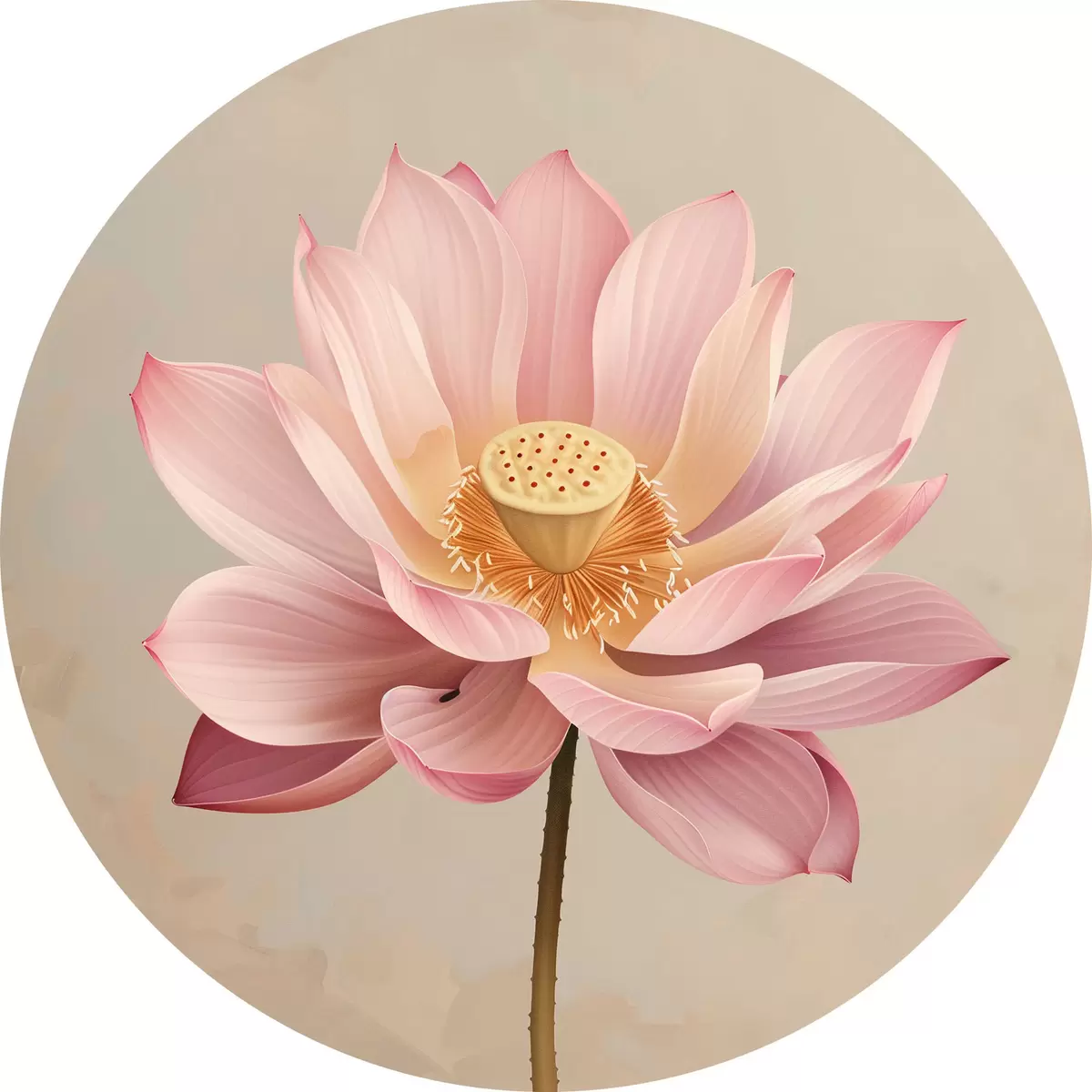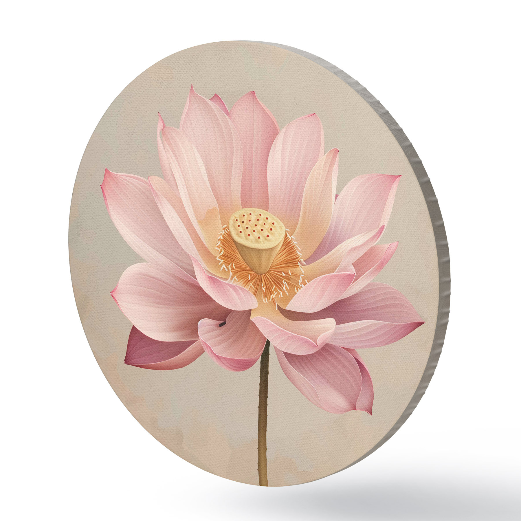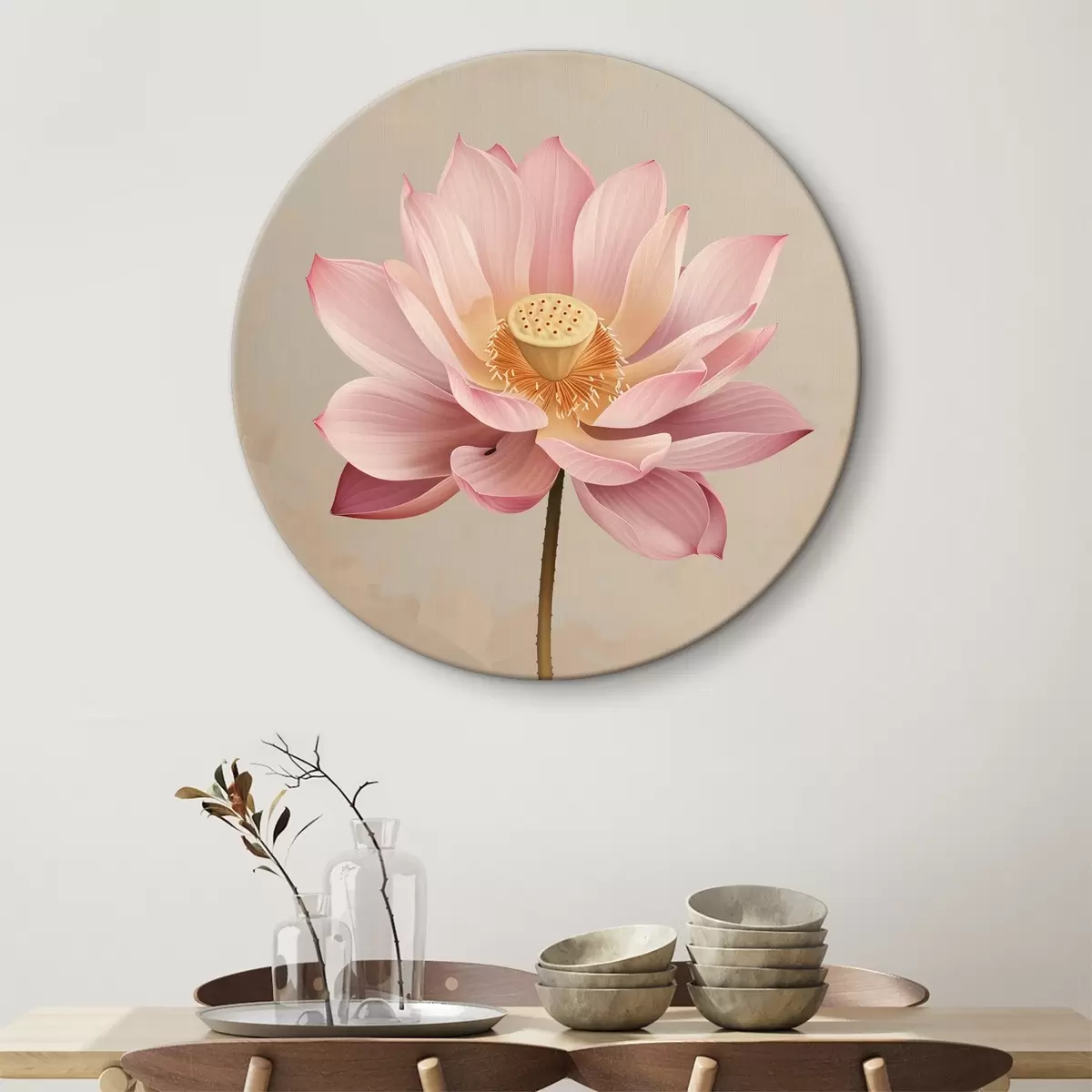 Quadri rotondi Loto rosa su sfondo beige r40769