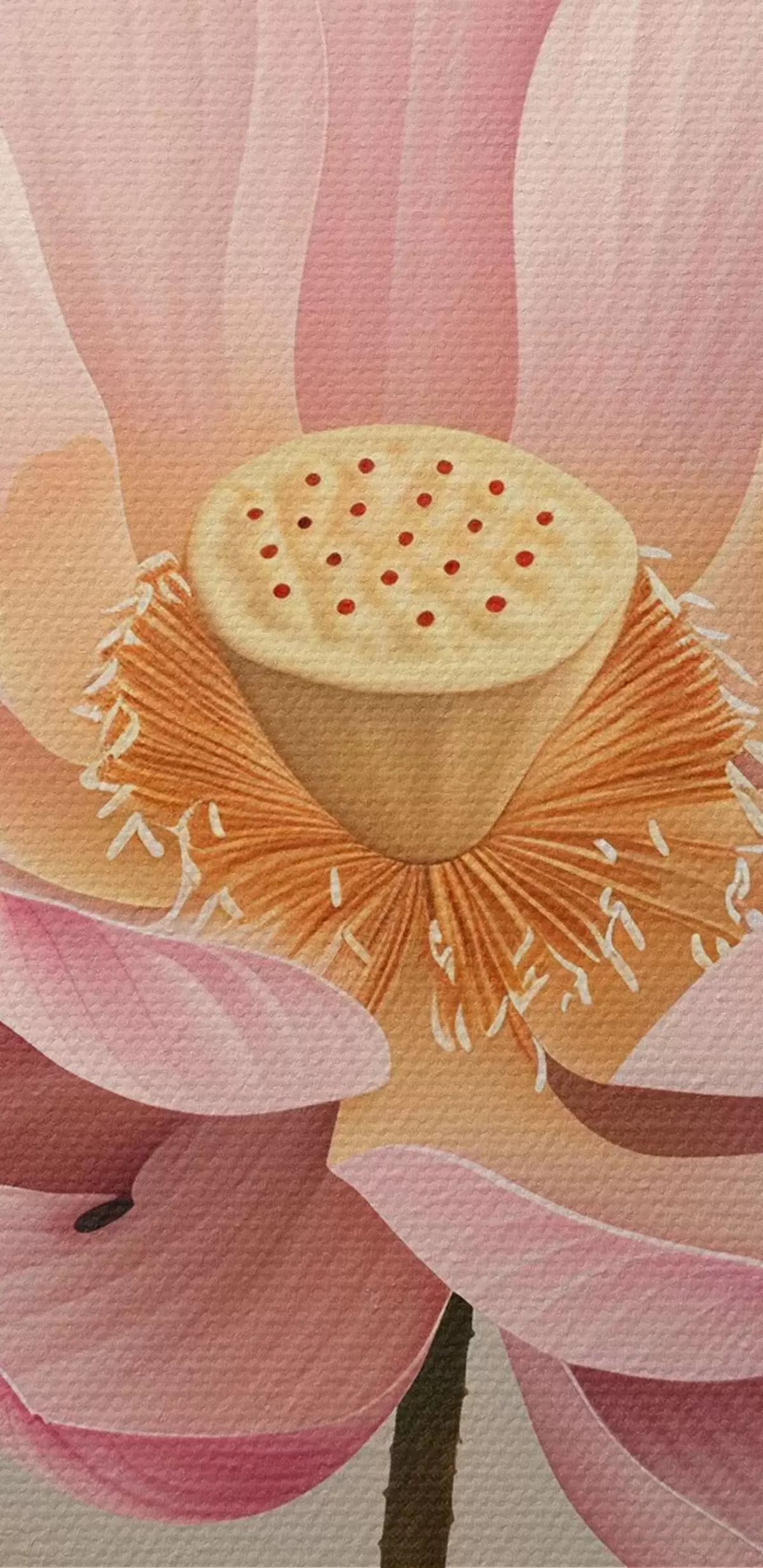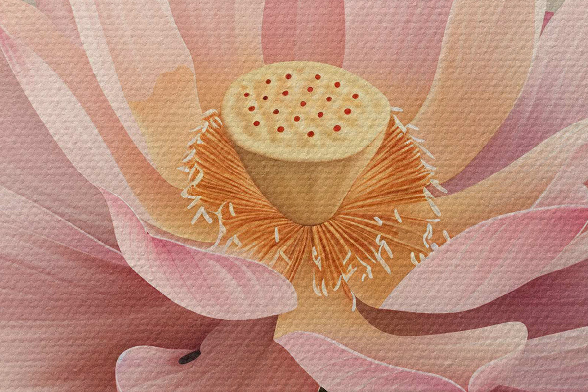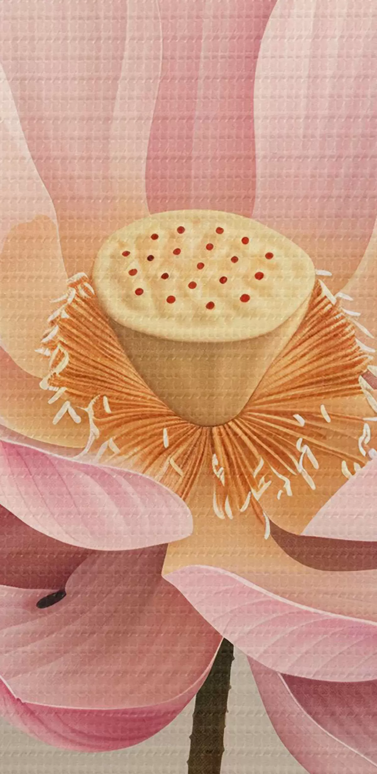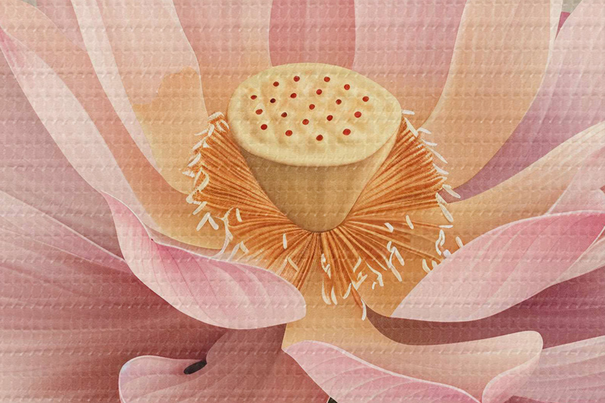 Quadri rotondi Loto rosa su sfondo beige r40769