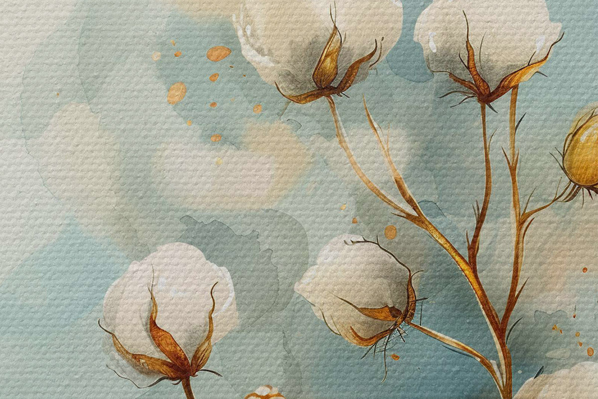 Immagine Un rametto di cotone su uno sfondo acquerellato Nr r40780