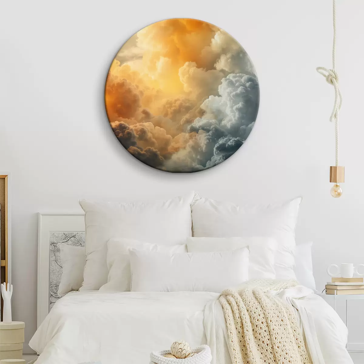Quadri rotondi Nuvole, blu scuro, arancione, antico r40785