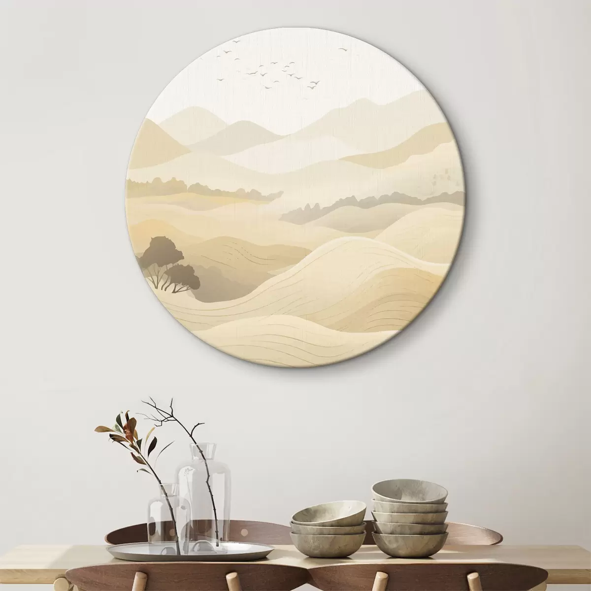 Quadri rotondi Colline, colori tenui, alberi r40845
