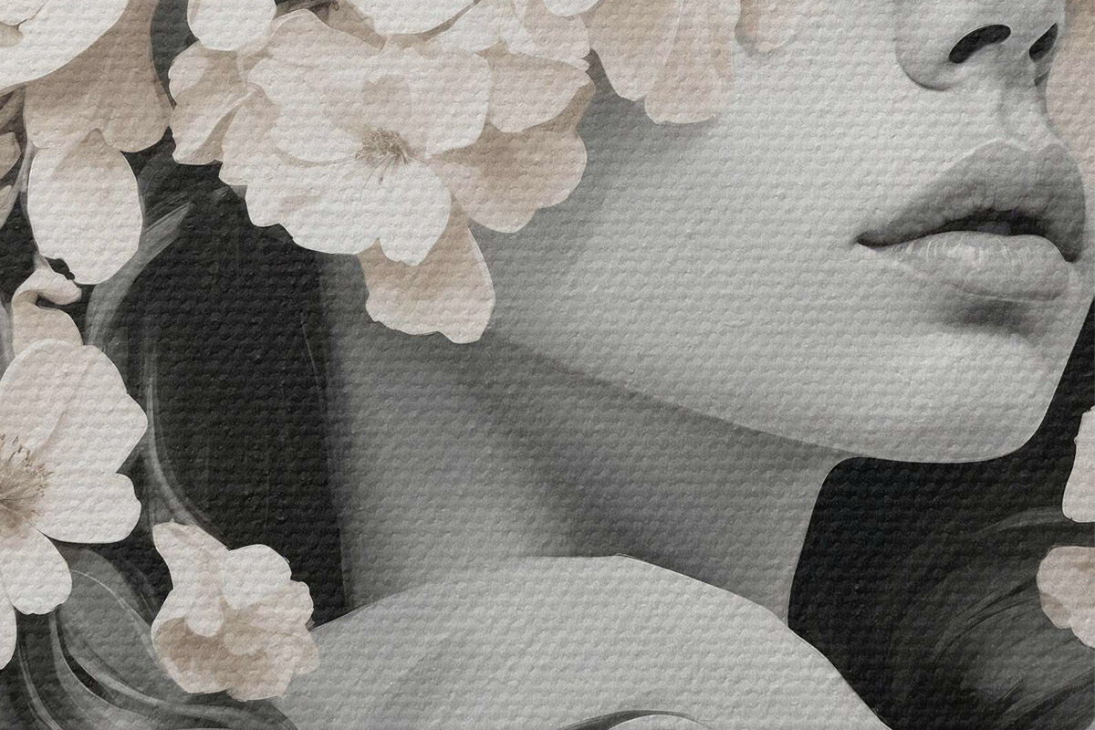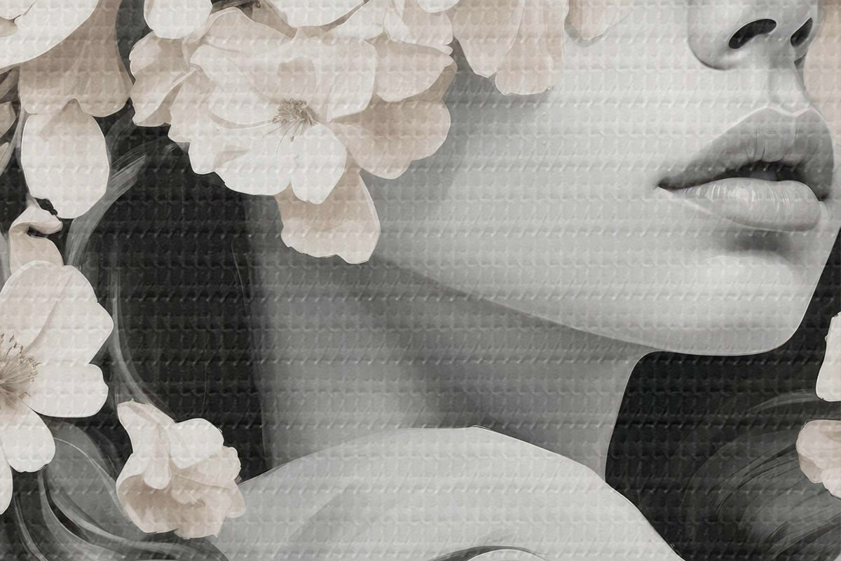 Immagine Ragazza con fiori sul viso nei colori bianco e nero Nr r40849