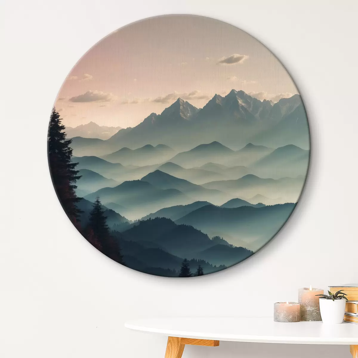 Quadri rotondi Vista delle montagne nella nebbia r40851