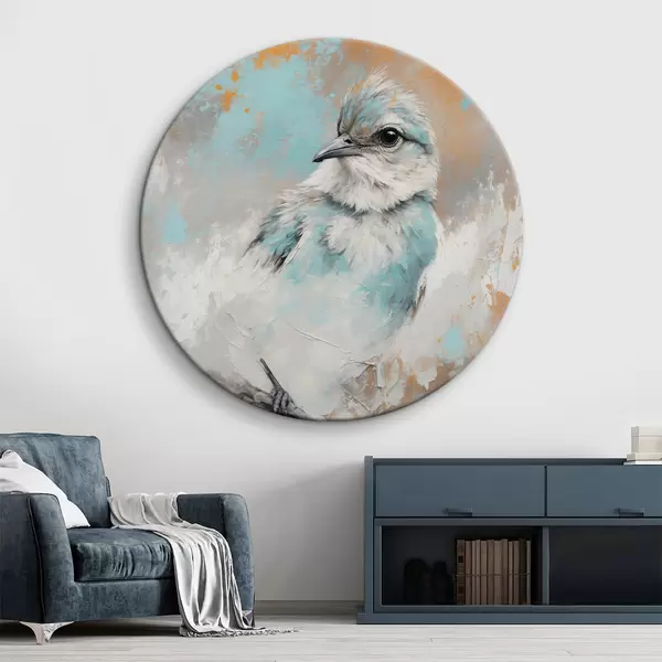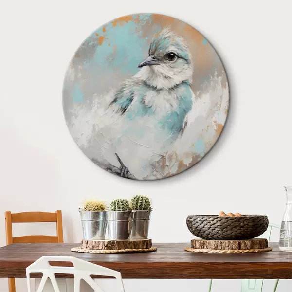 Quadri rotondi Uccello su un ramo su uno sfondo astratto r40853