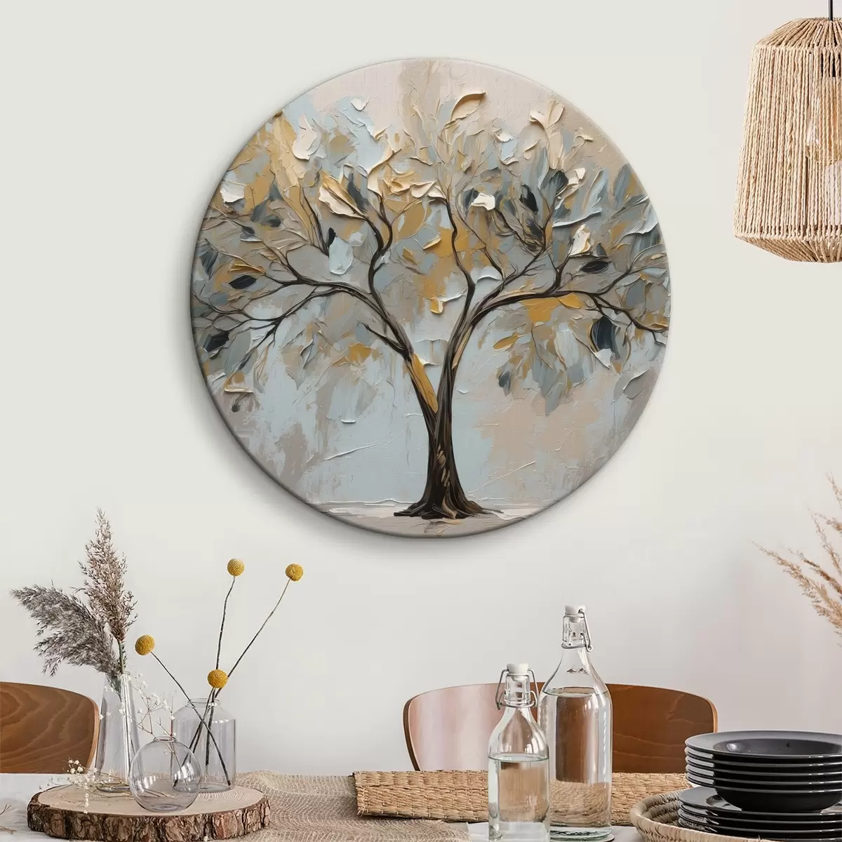 Quadri rotondi Albero su sfondo astratto ad olio r40858