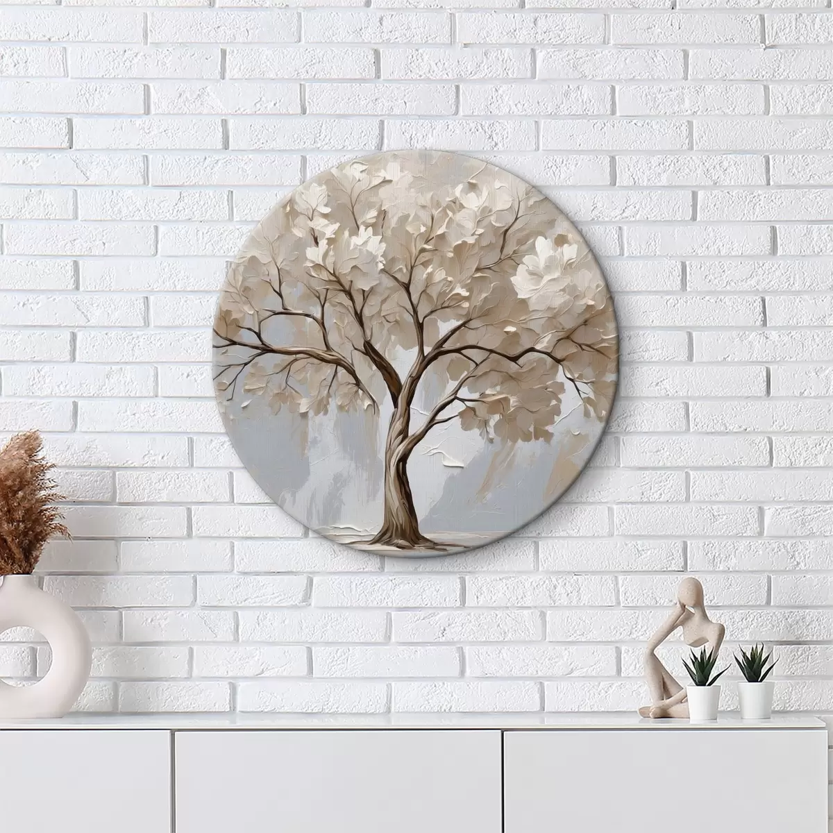 Quadri rotondi Albero bianco su sfondo astratto ad olio r40860