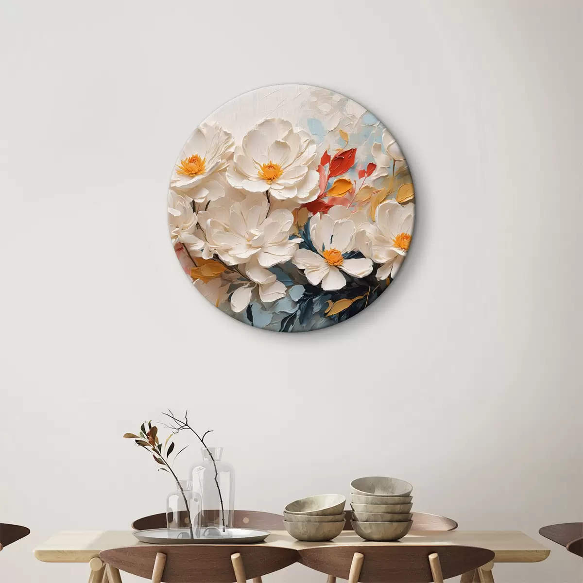 Quadri rotondi Fiori bianchi astratti in olio r40862
