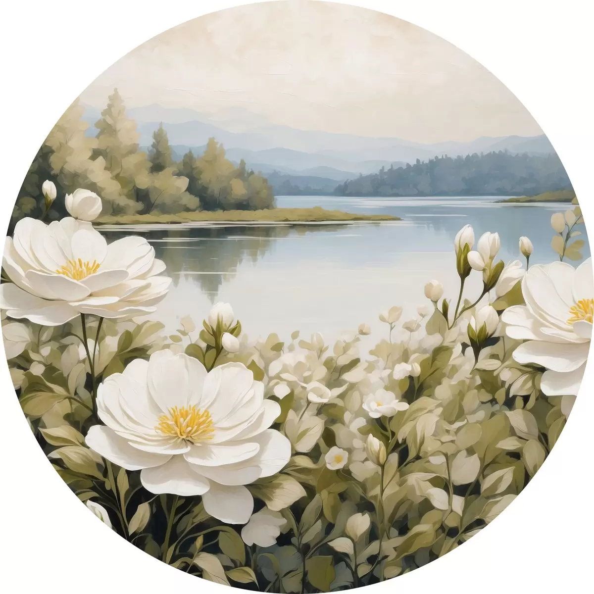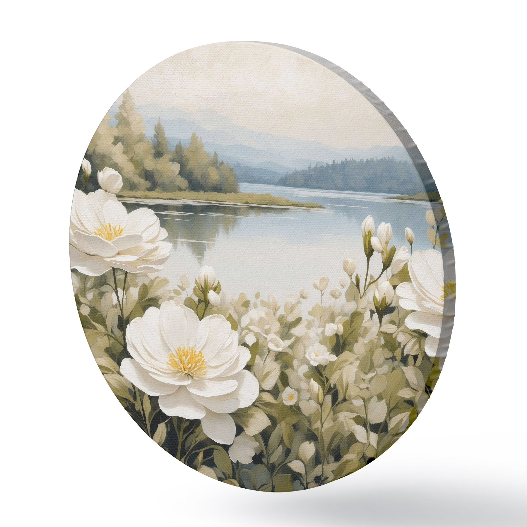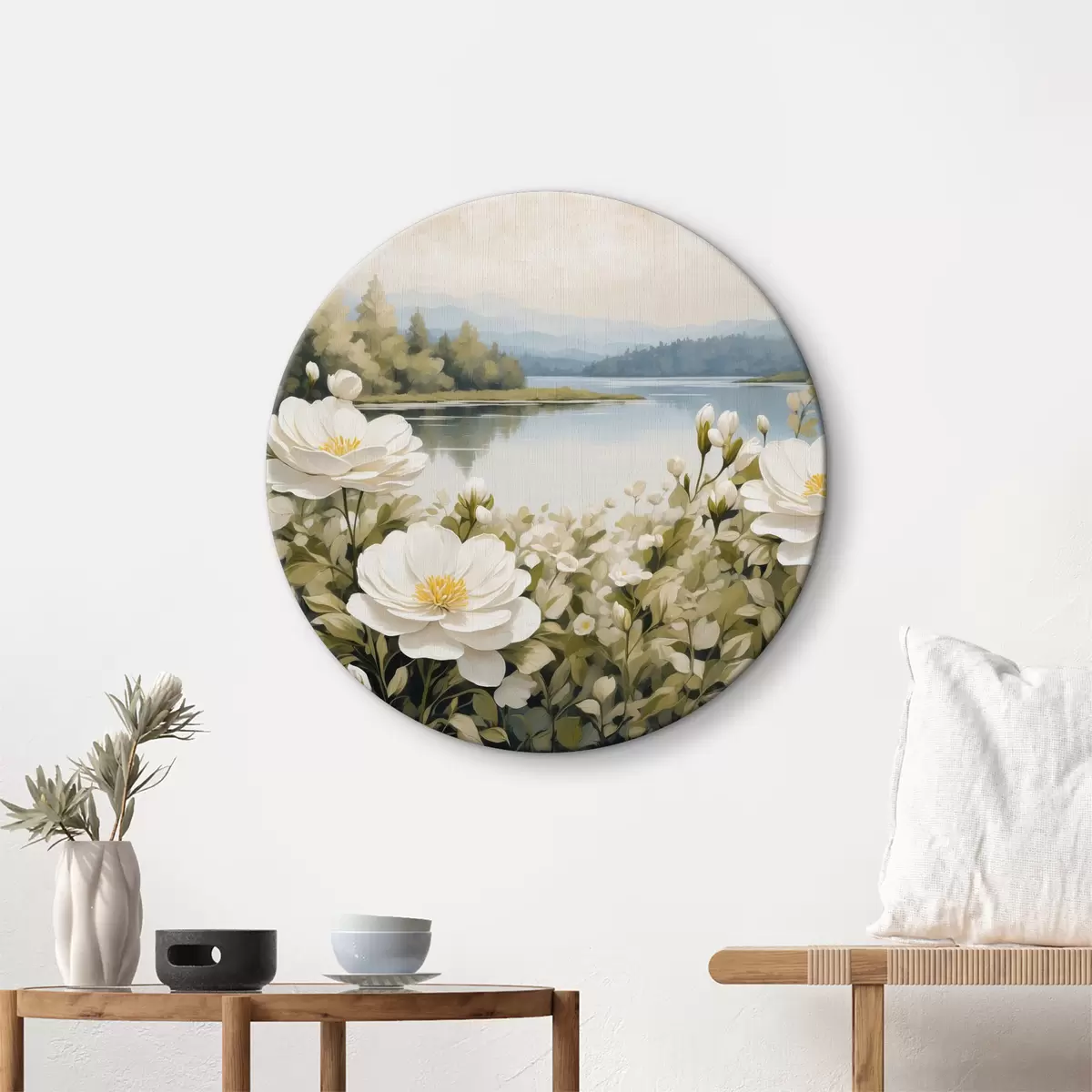 Quadri rotondi Fiori bianchi sullo sfondo del fiume r40869