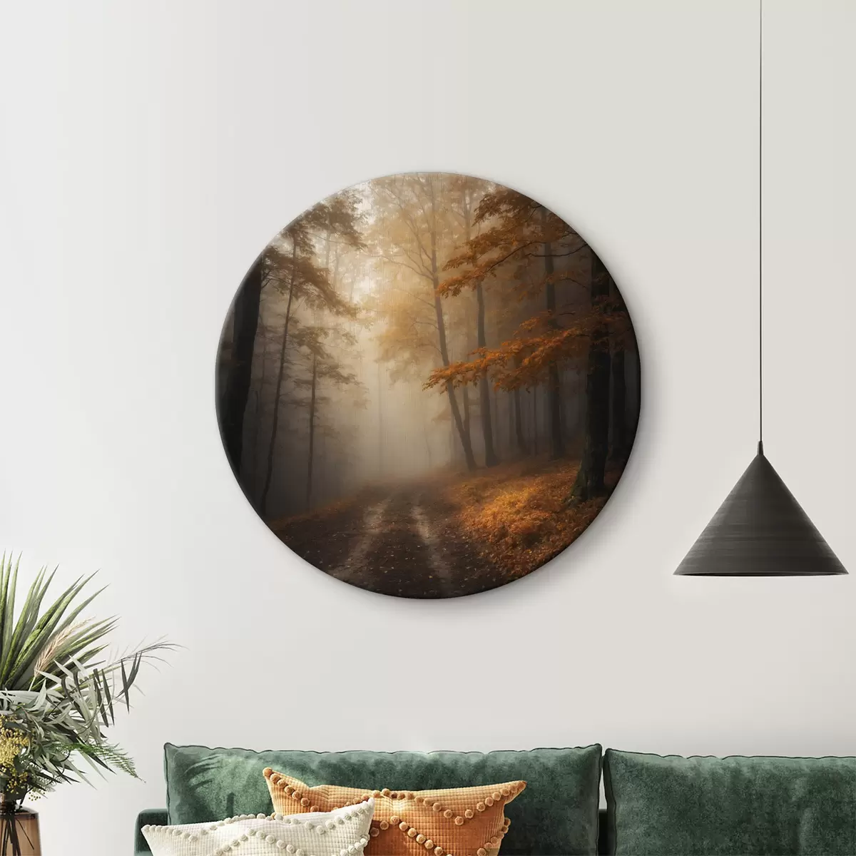 Quadri rotondi Strada in autunno, foresta nebbiosa r40874