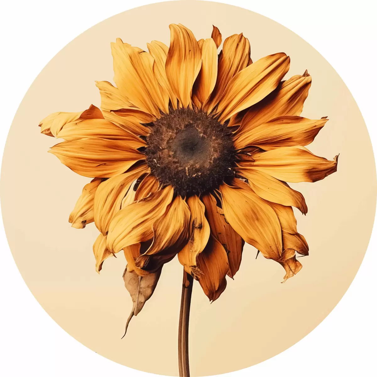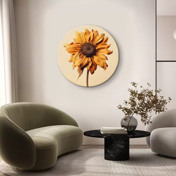 Quadri rotondi Fiore secco con petali gialli - minimalismo r40882