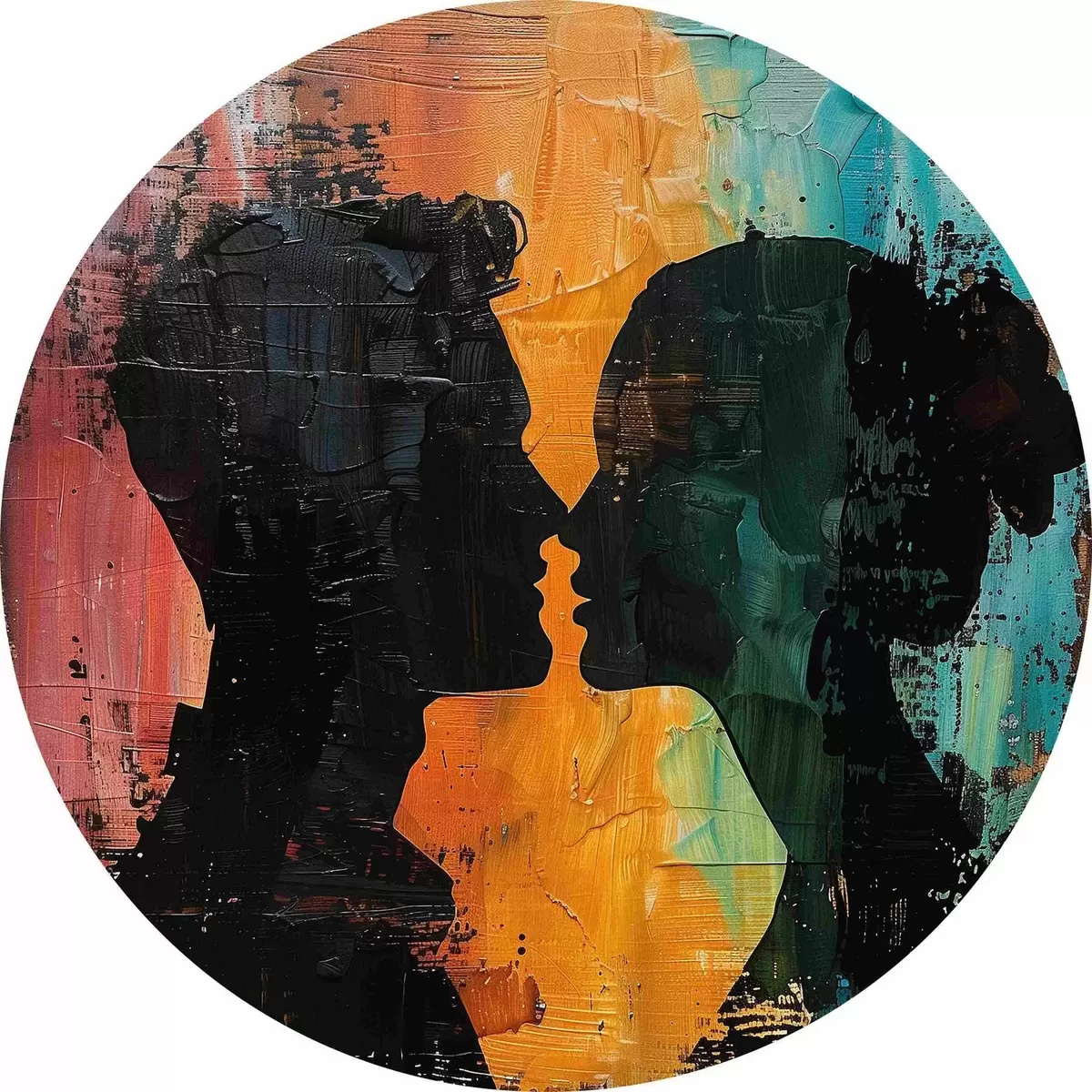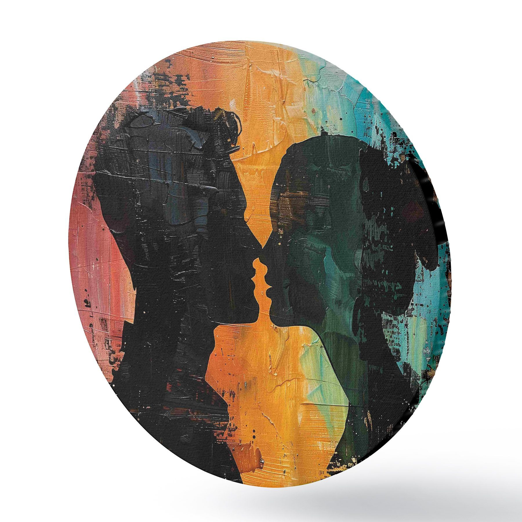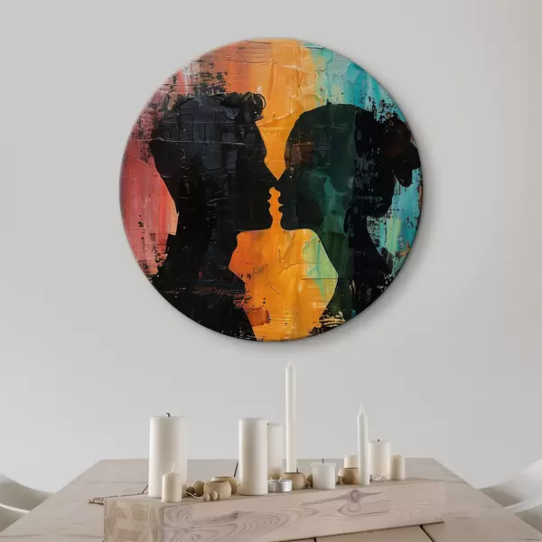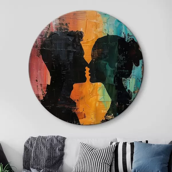 Quadri rotondi Un dipinto ad olio che raffigura la silhouette di una coppia r40893