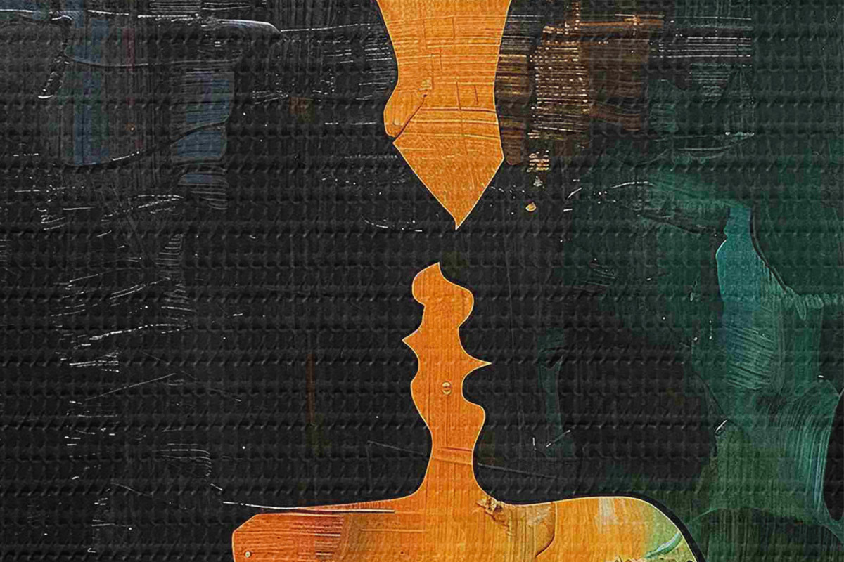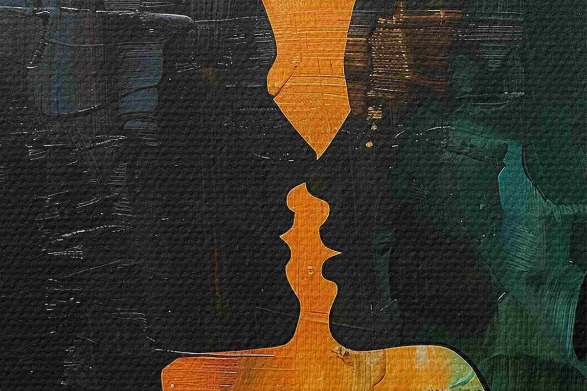 Immagine Un dipinto ad olio che raffigura la silhouette di una coppia Nr r40893