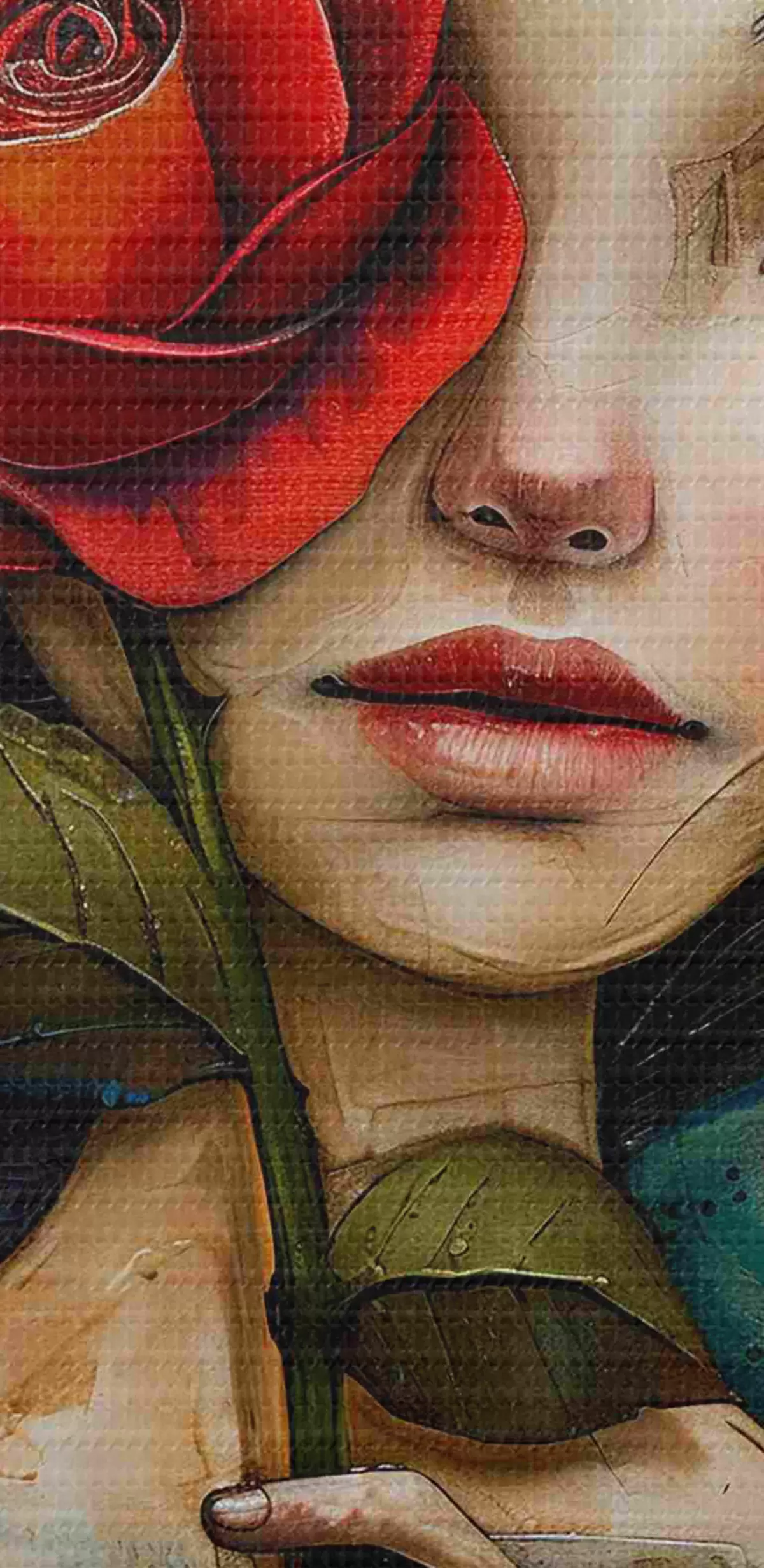 Quadri rotondi Ragazza acquerellata con una rosa r40895