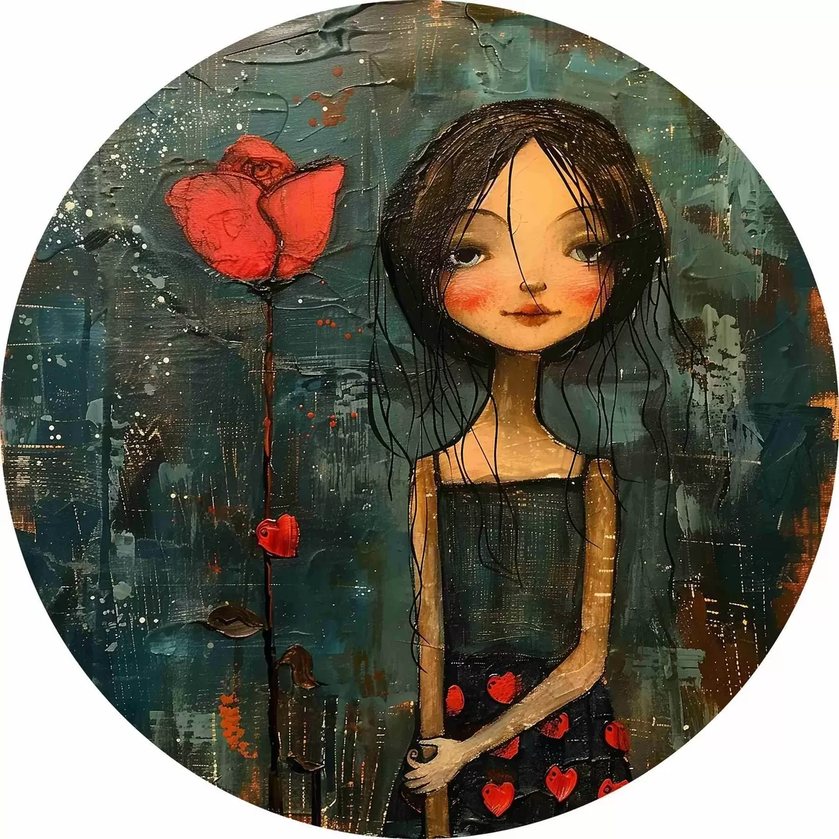 Quadri rotondi Ragazza con un fiore r40897