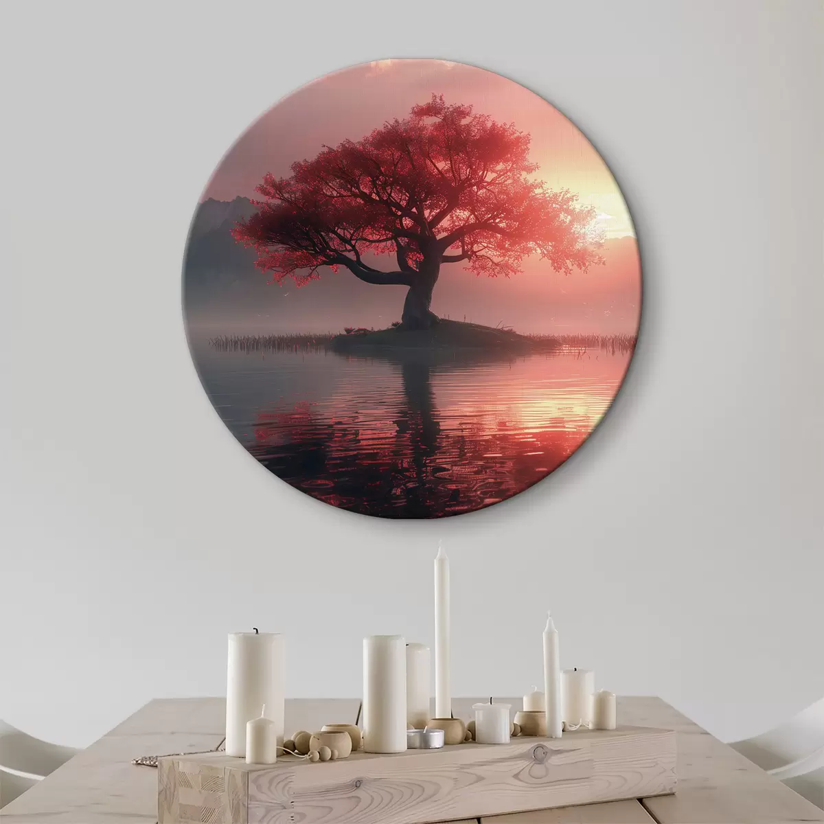Quadri rotondi Albero vicino allo stagno al tramonto r40934