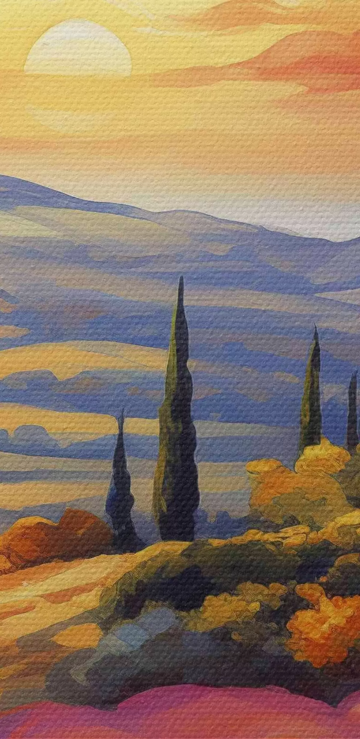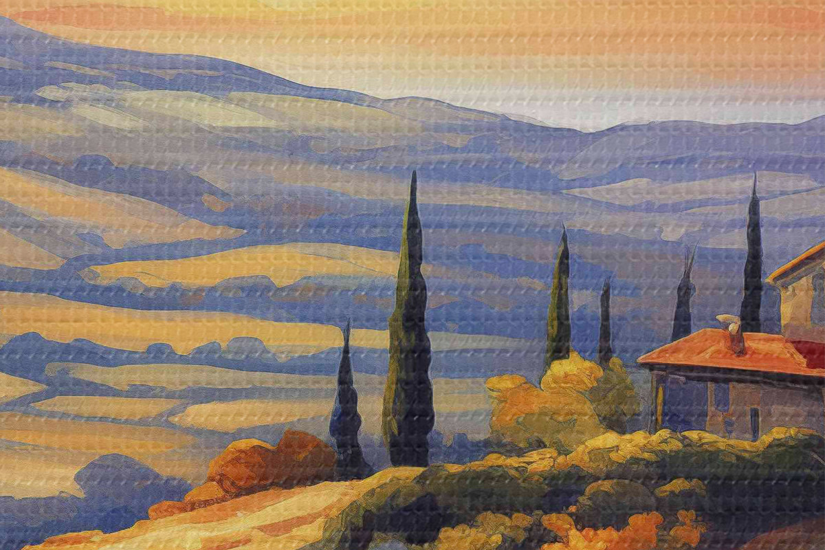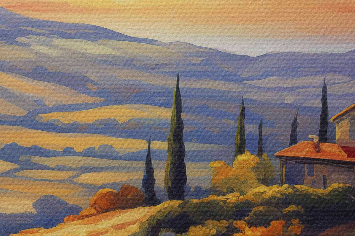 Immagine Tramonto in Toscana, campi di lavanda, bei paesaggi, acquerello Nr r40942