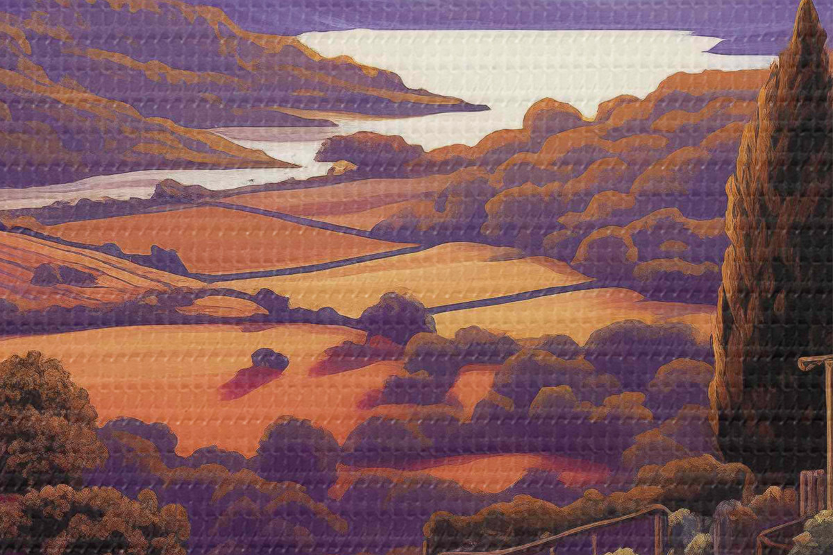 Quadri rotondi Campi di lavanda, tramonto, bei paesaggi, montagne r40943