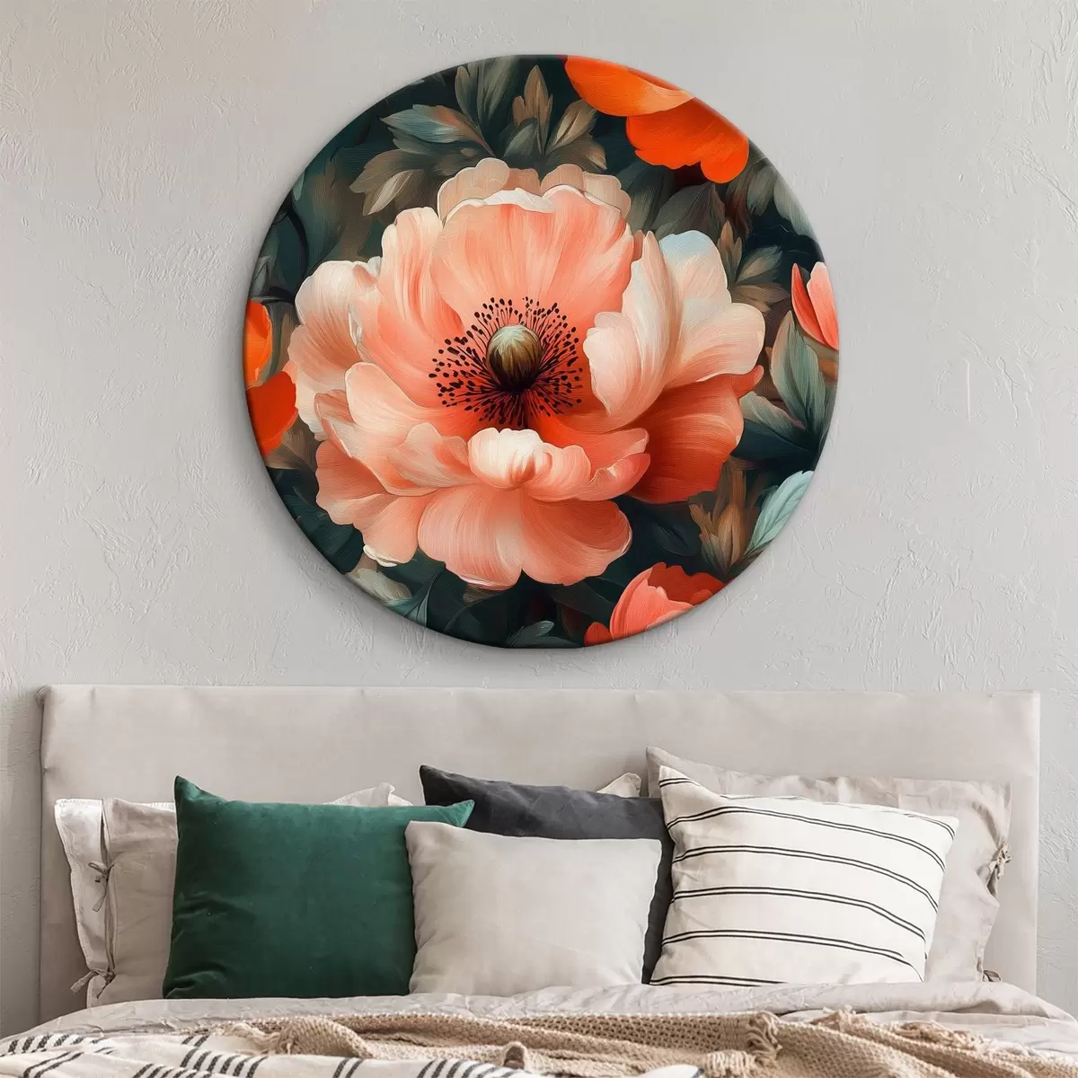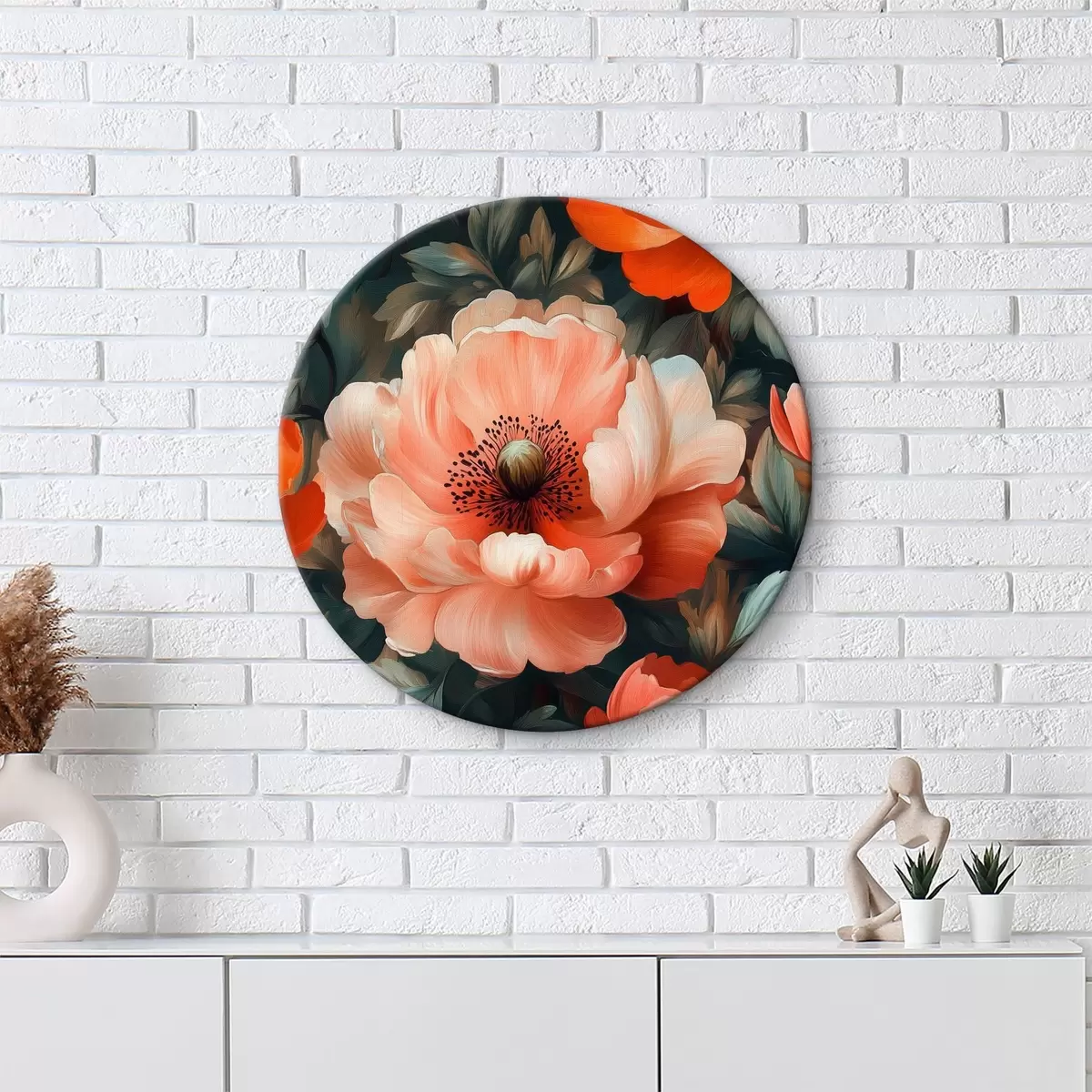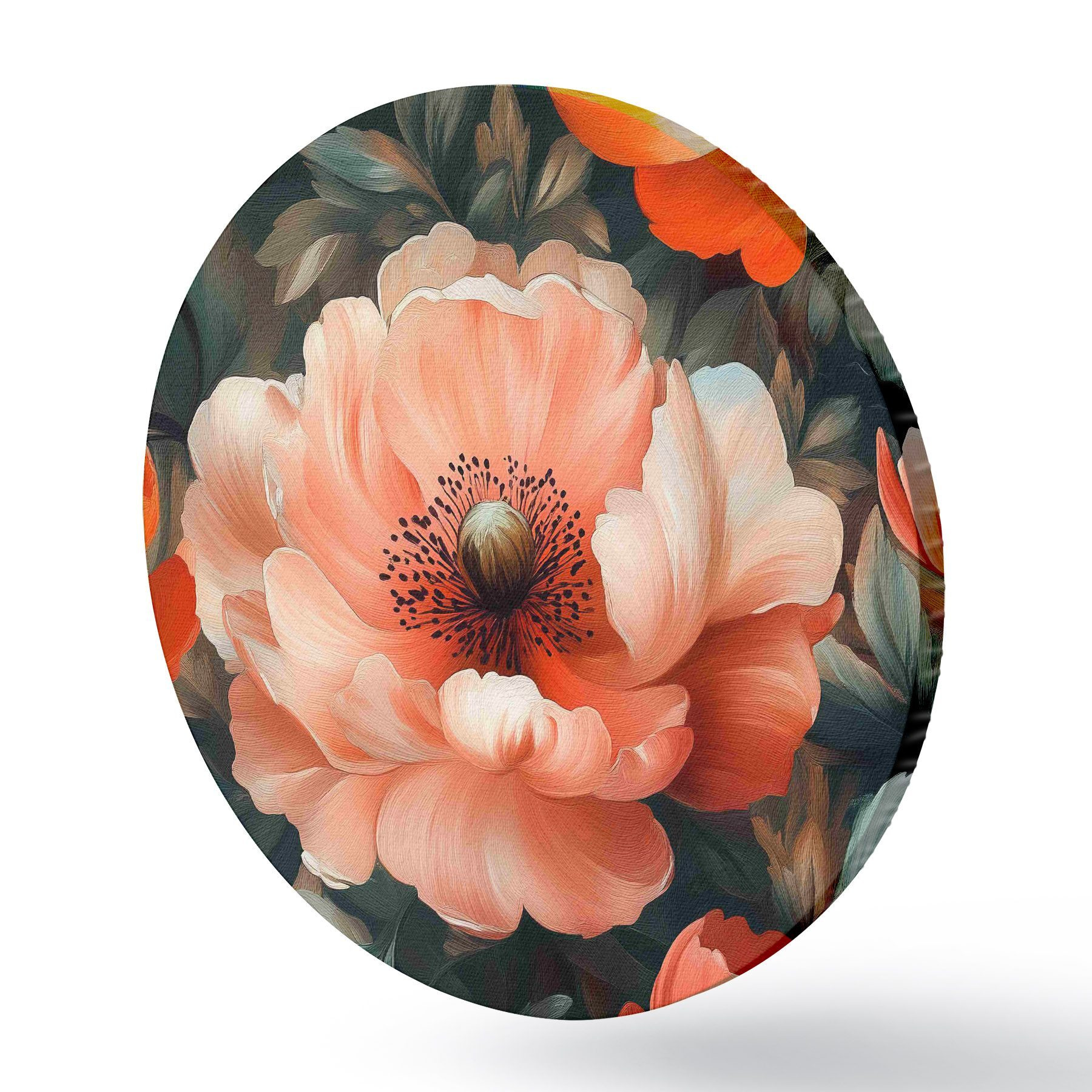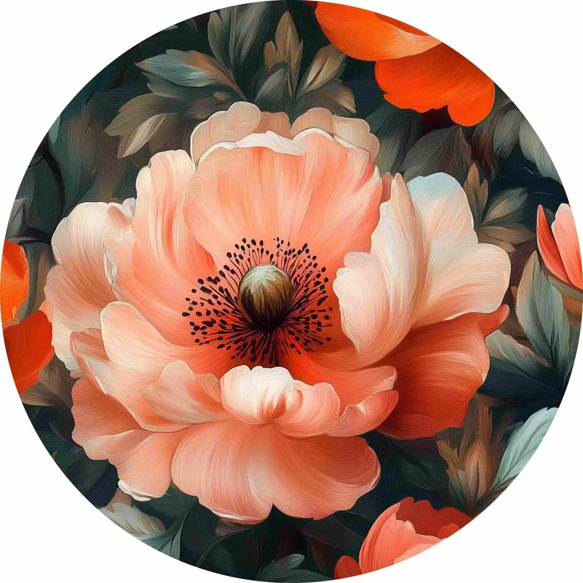 Quadri rotondi Grandi peonie rosse con delicate pennellate ad olio r40964