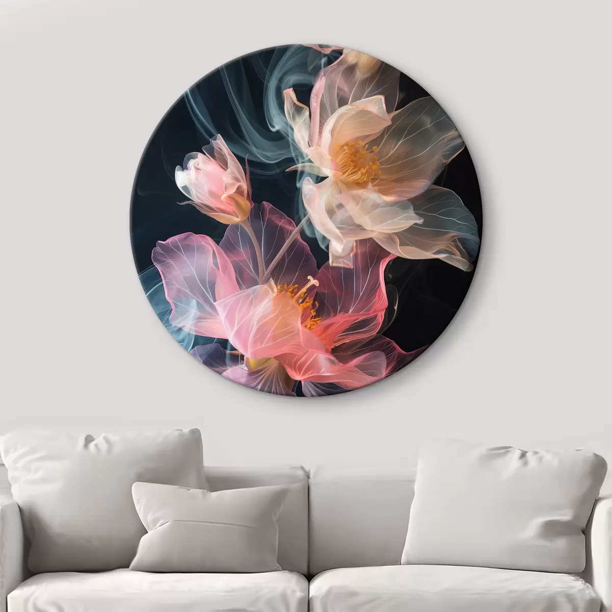 Quadri rotondi Fiori delicati e ariosi circondati dal fumo r40967