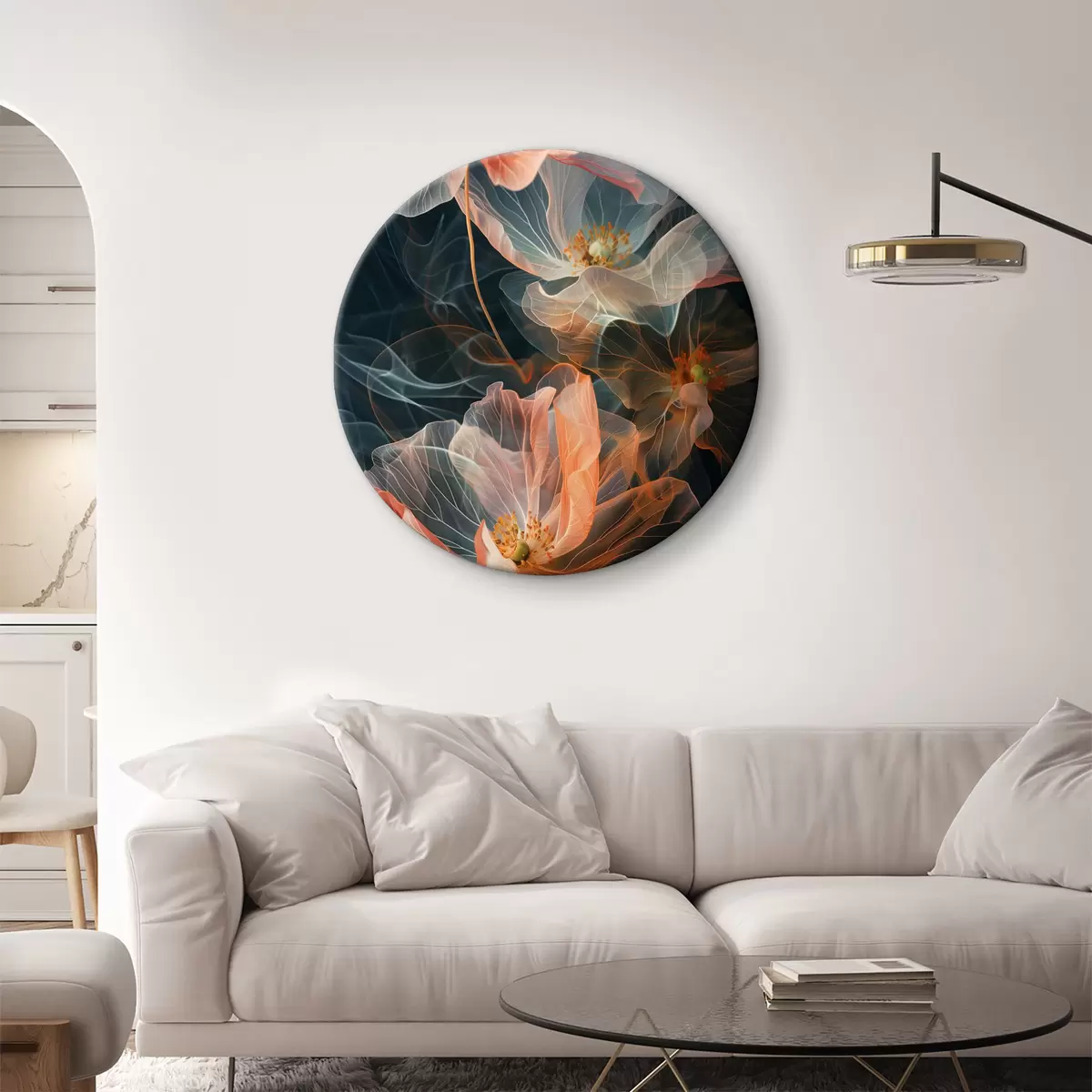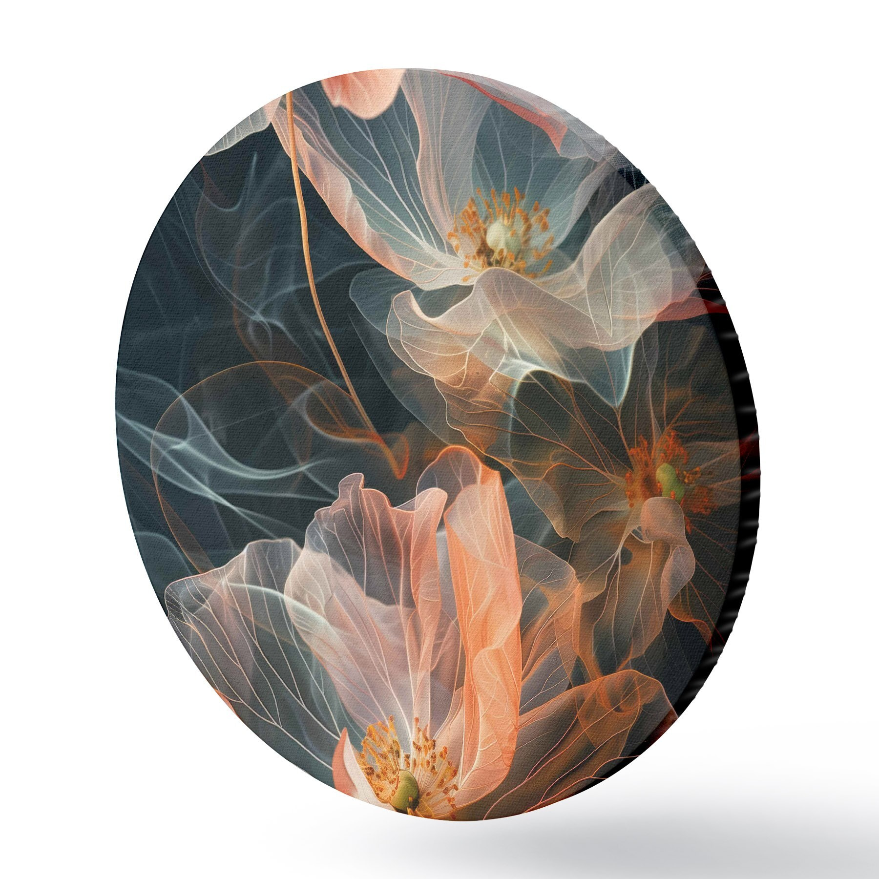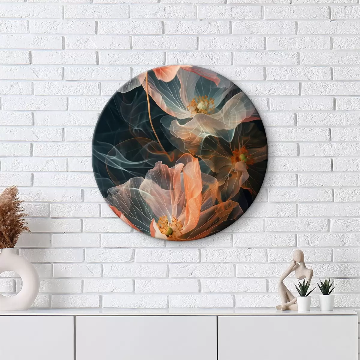 Quadri rotondi Fiori luminosi e traslucidi avvolti dal fumo su uno sfondo scuro r40968