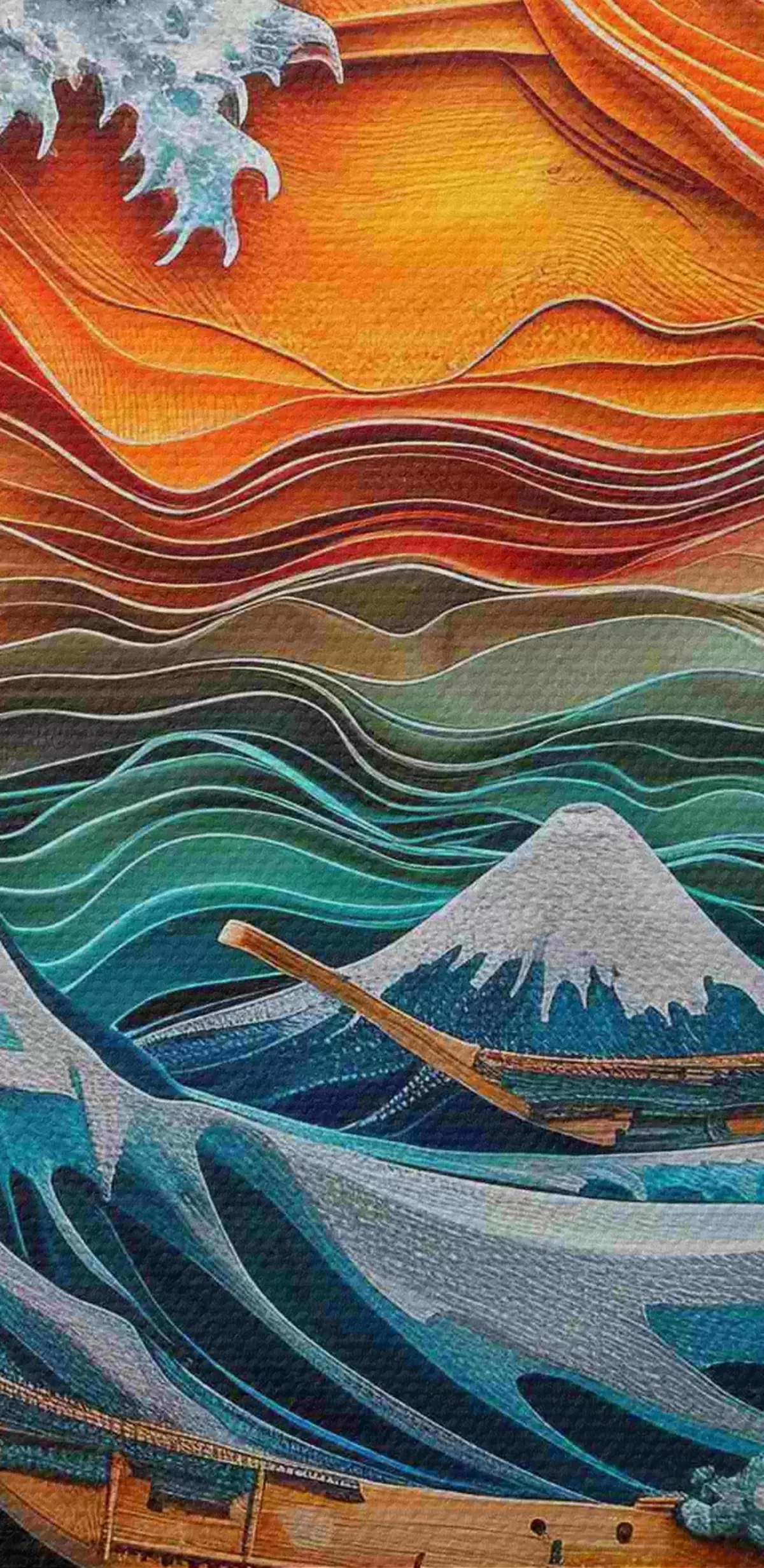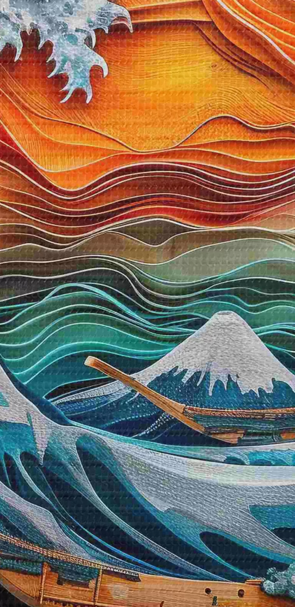 Immagine Imitazione di un bassorilievo: un oceano impetuoso con barche e sole Nr r40976