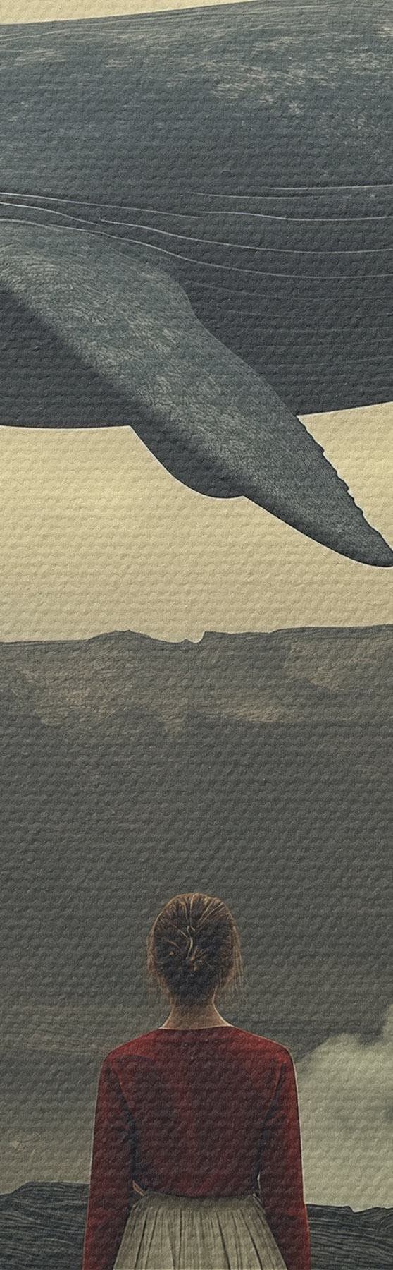 Immagine Ragazza sulla lava con una grande balena volante nel cielo Nr r40986