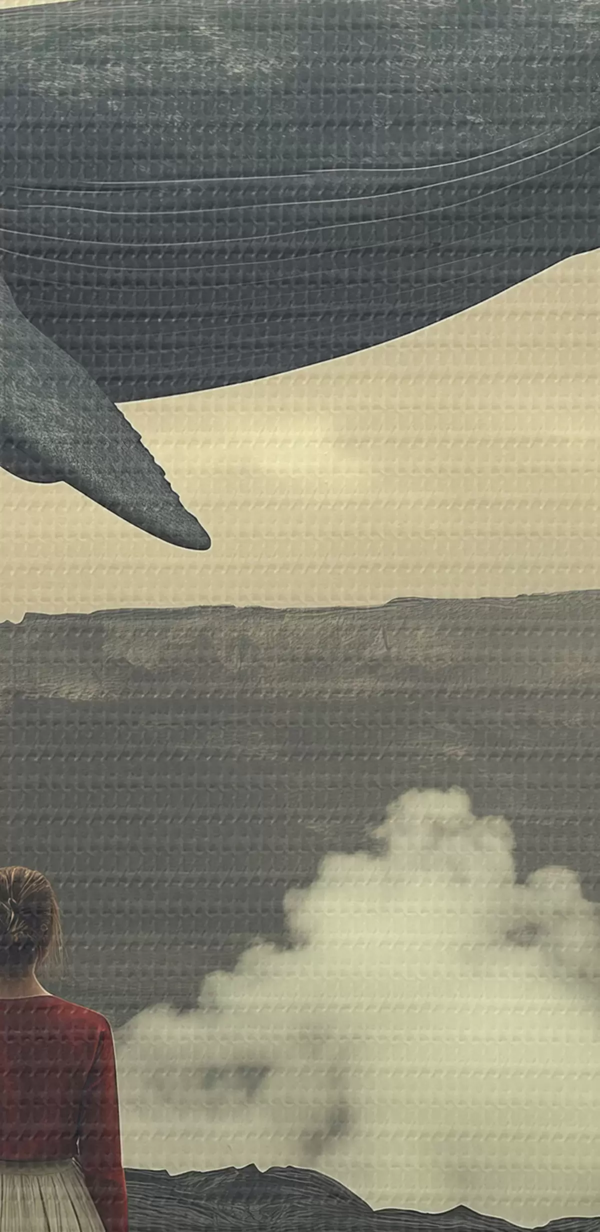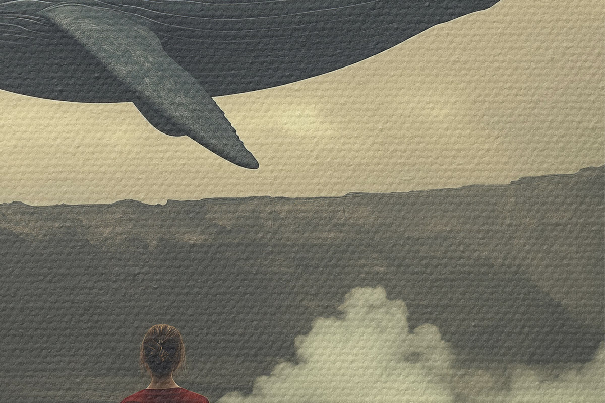 Immagine Ragazza sulla lava con una grande balena volante nel cielo Nr r40986