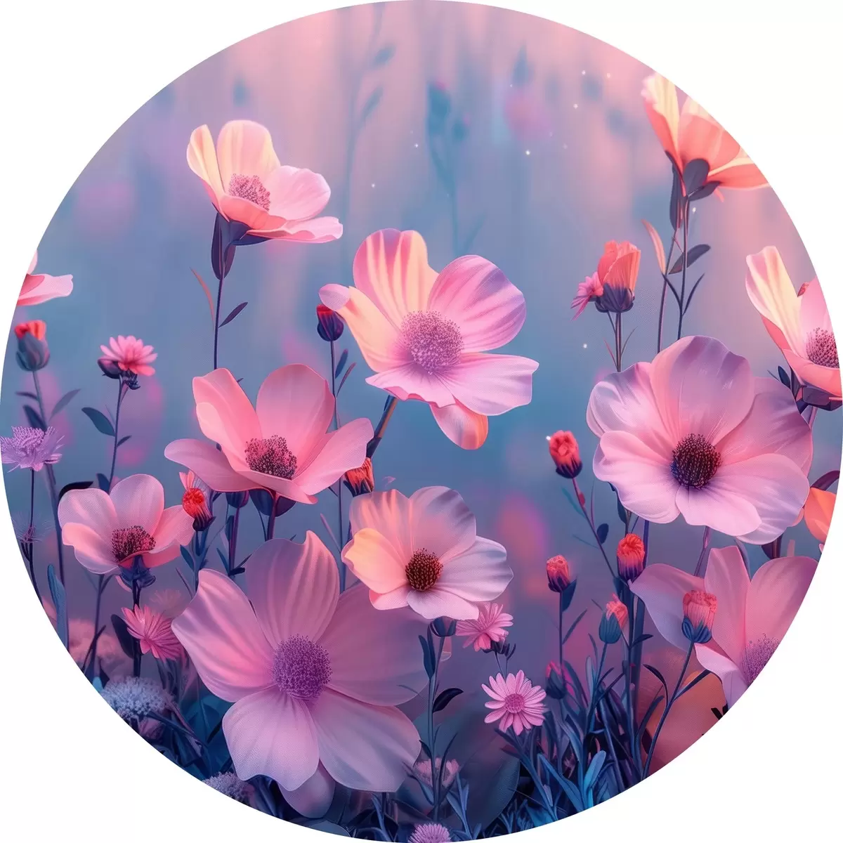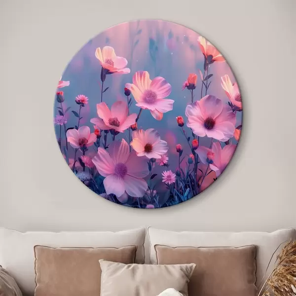 Quadri rotondi Fiori fiabeschi nei toni del rosa e dell'azzurro r40990