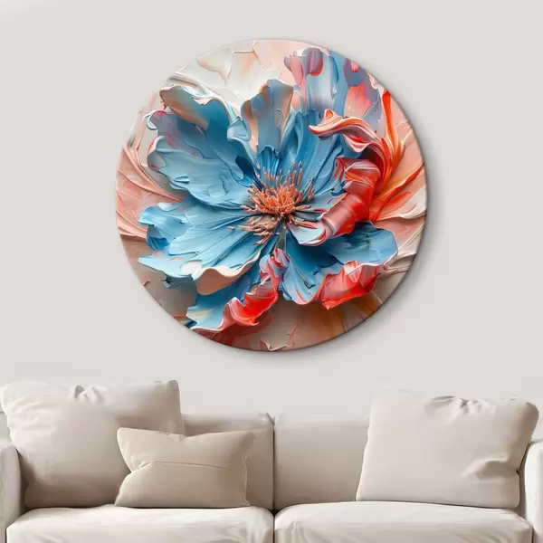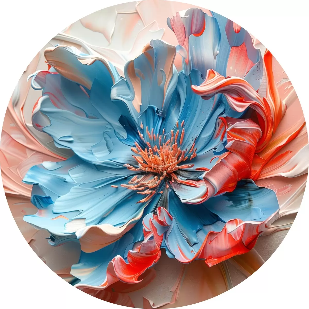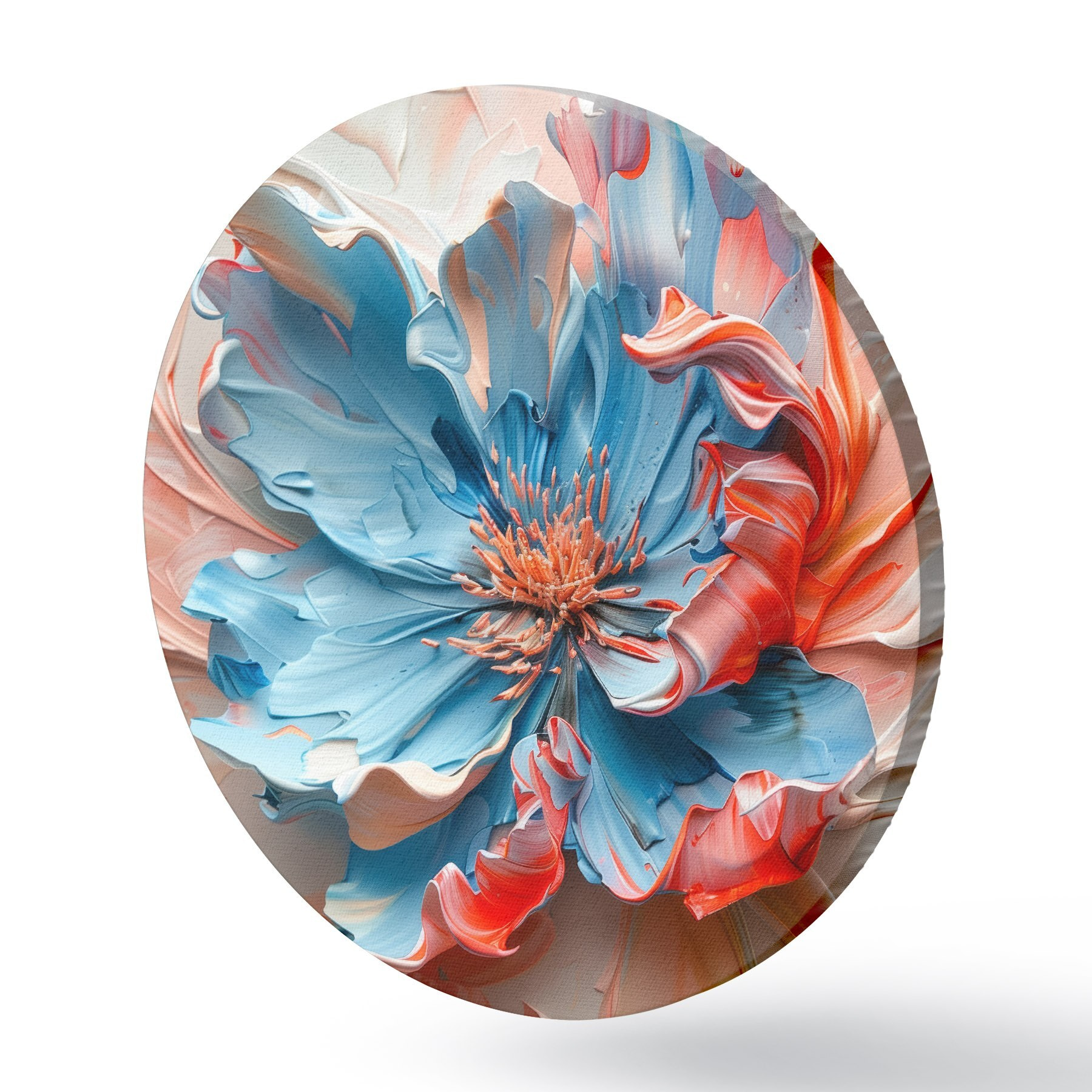 Quadri rotondi Papavero magico con petali voluminosi nelle tonalità del pesca e del blu r40992
