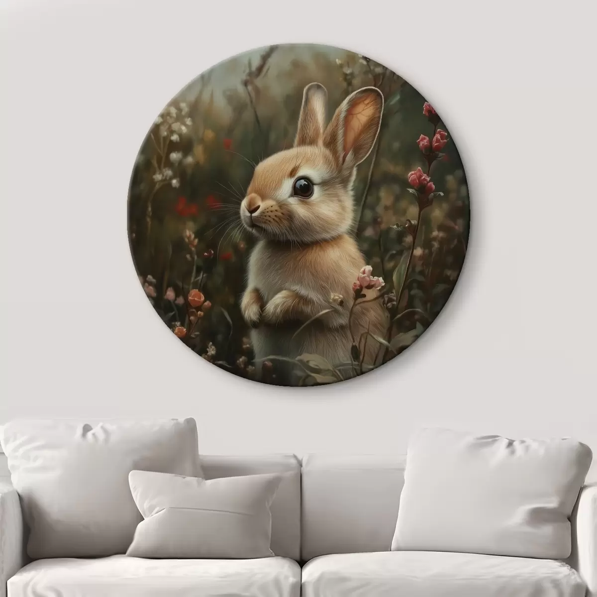 Quadri rotondi Un simpatico coniglietto tra fiori di campo in tonalità pastello r40998