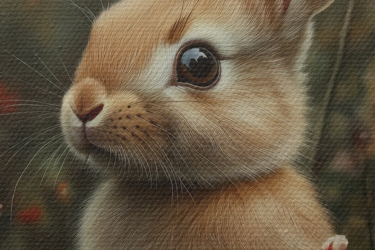Immagine Un simpatico coniglietto tra fiori di campo in tonalità pastello Nr r40998