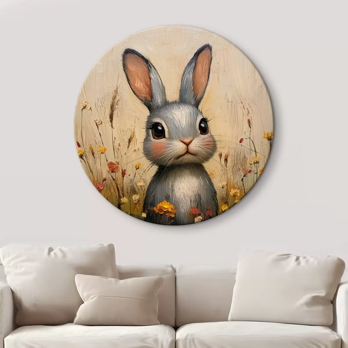 Quadri rotondi Coniglio nel campo tra i fiori con pennellate r40999