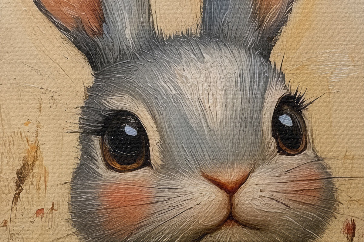 Immagine Coniglio nel campo tra i fiori con pennellate Nr r40999