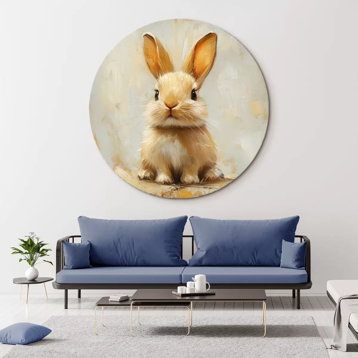 Quadri rotondi Un coniglietto beige su uno sfondo chiaro con pennellate decise r41000