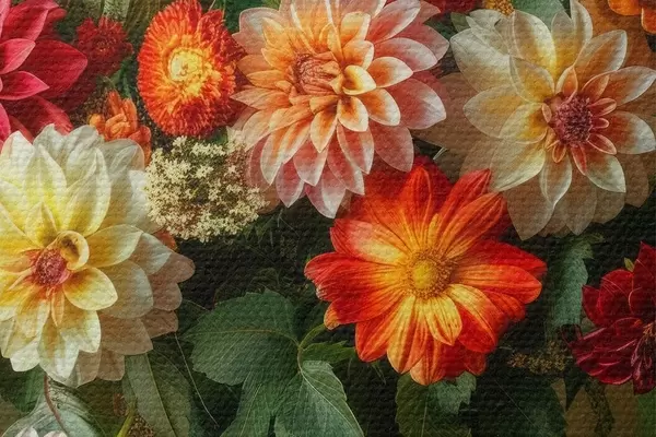 Immagine Un lussureggiante bouquet di crisantemi in vaso su uno sfondo di verde intenso Nr r41001