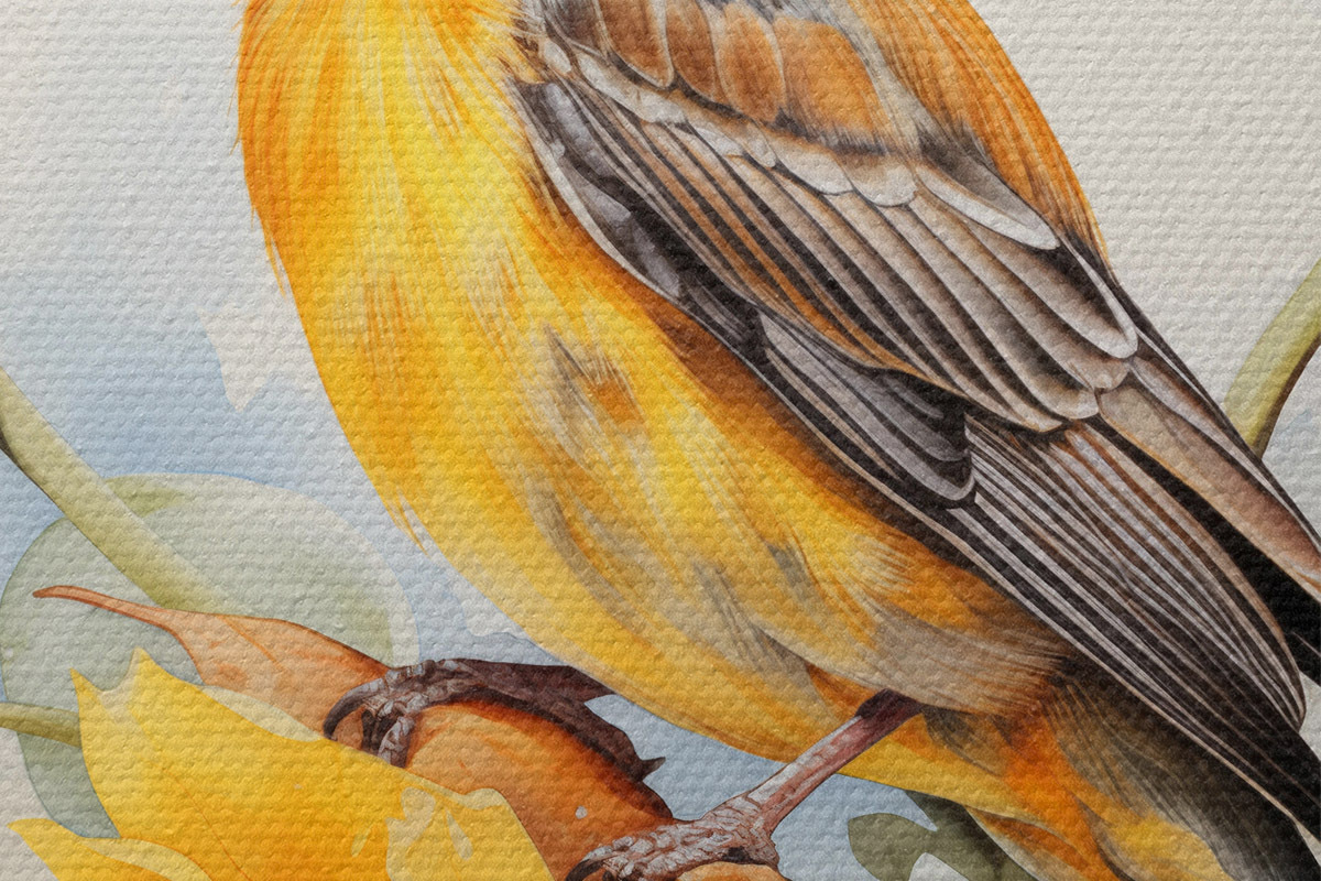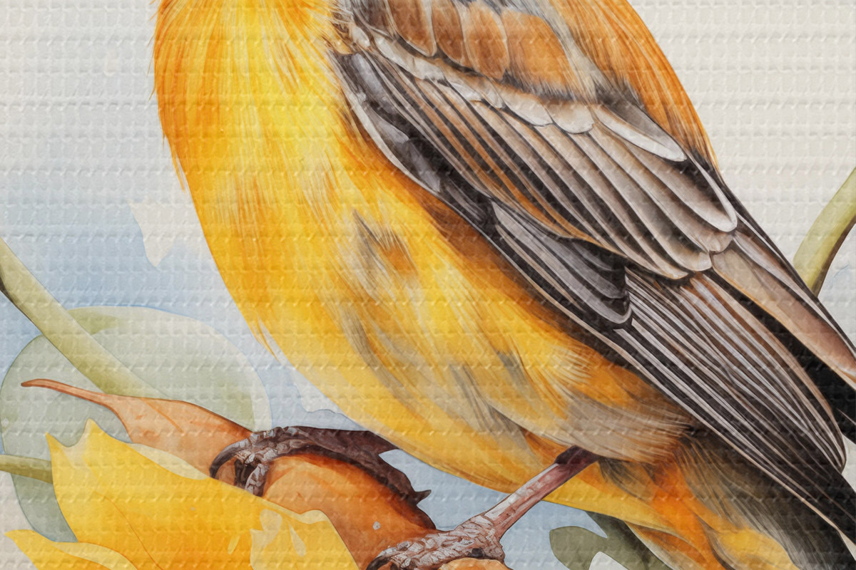 Immagine Uccello giallo seduto su un girasole acquerello Nr r41015