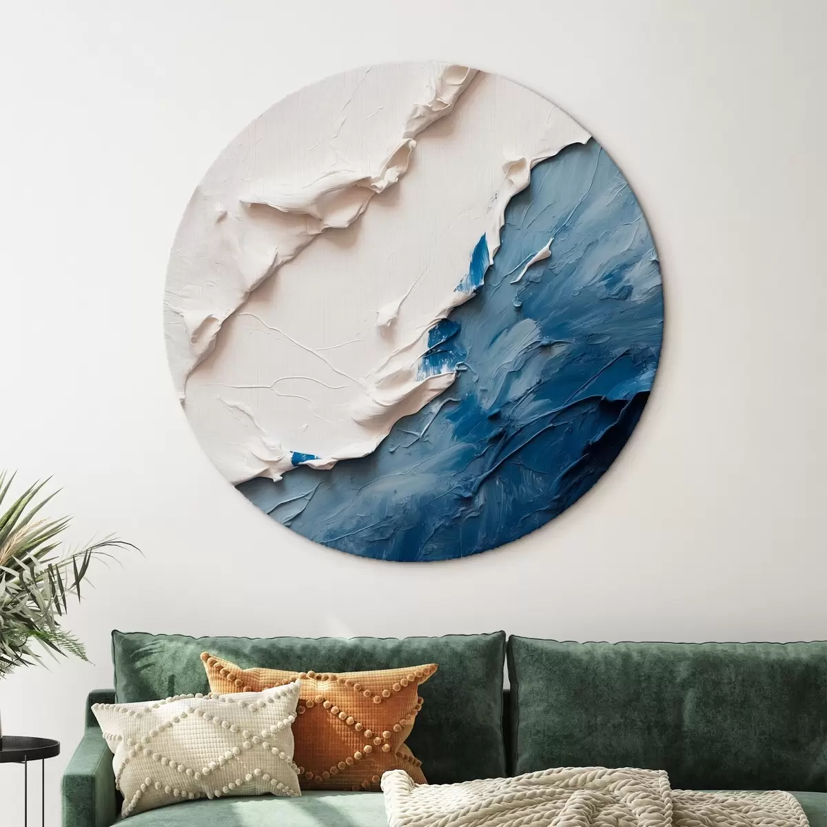Quadri rotondi Astrazione con colori ad olio bianchi e blu r41025