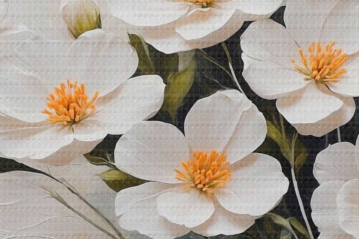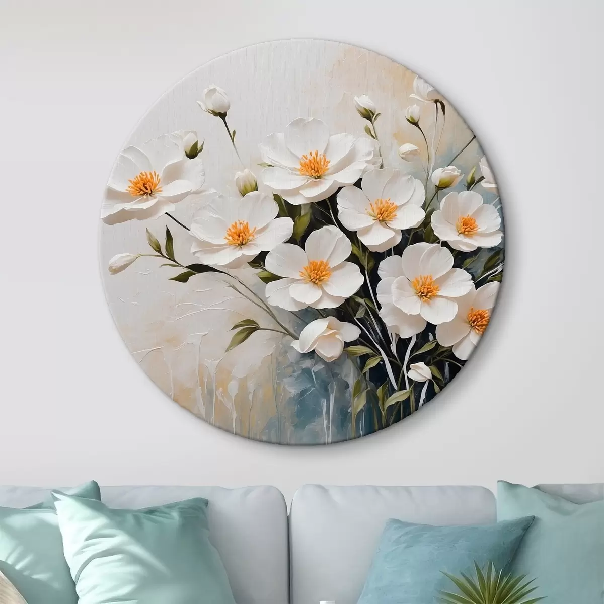 Quadri rotondi Fiori bianchi su sfondo sfocato r41039