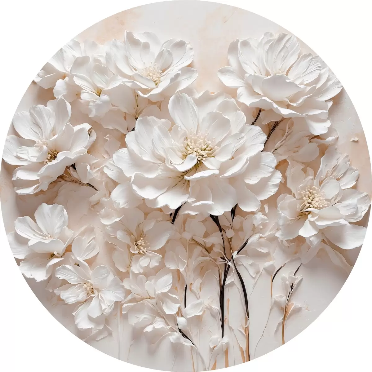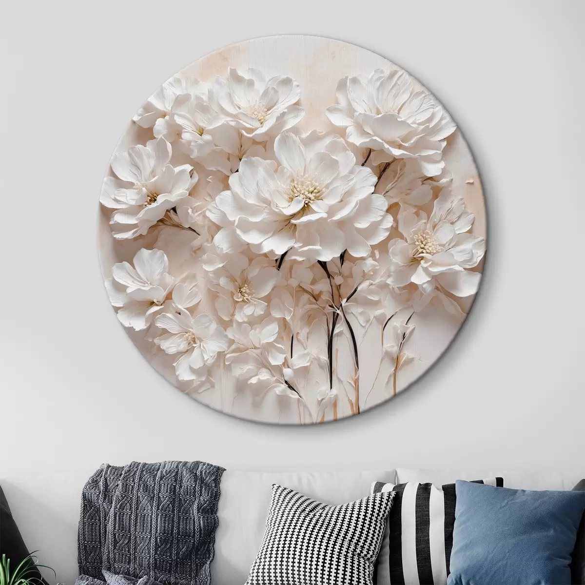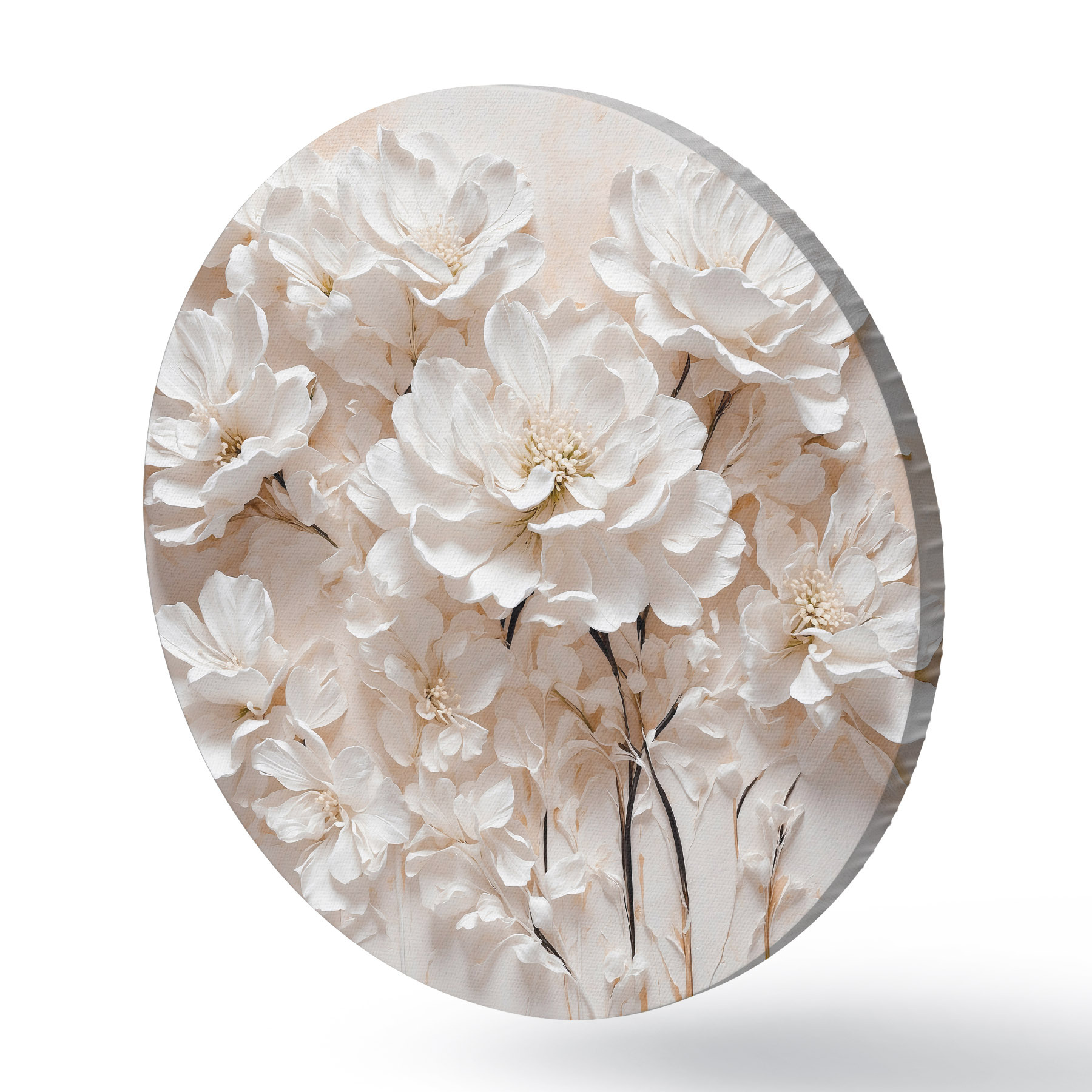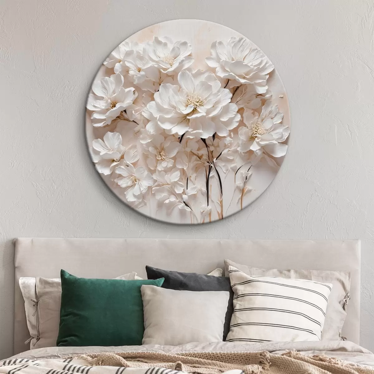 Quadri rotondi Fiori bianchi su sfondo bianco e arancione r41042