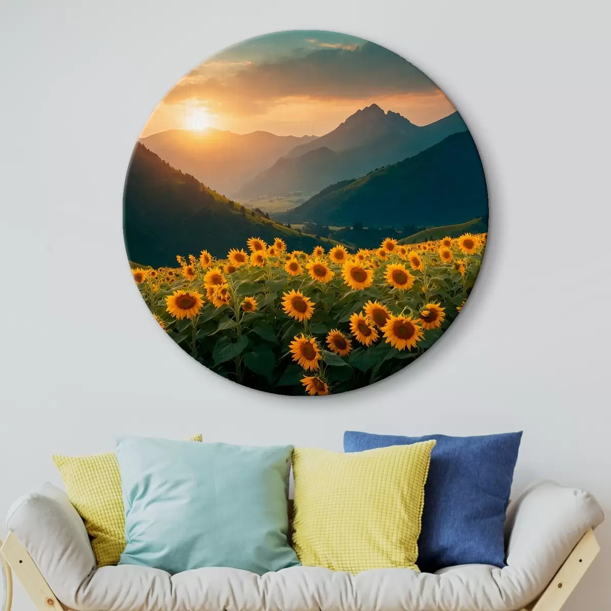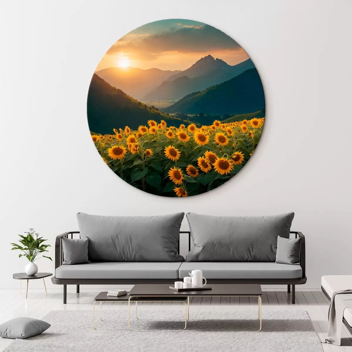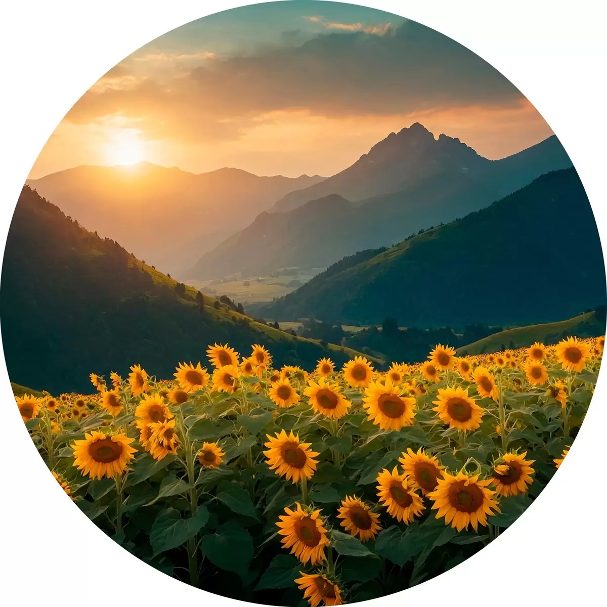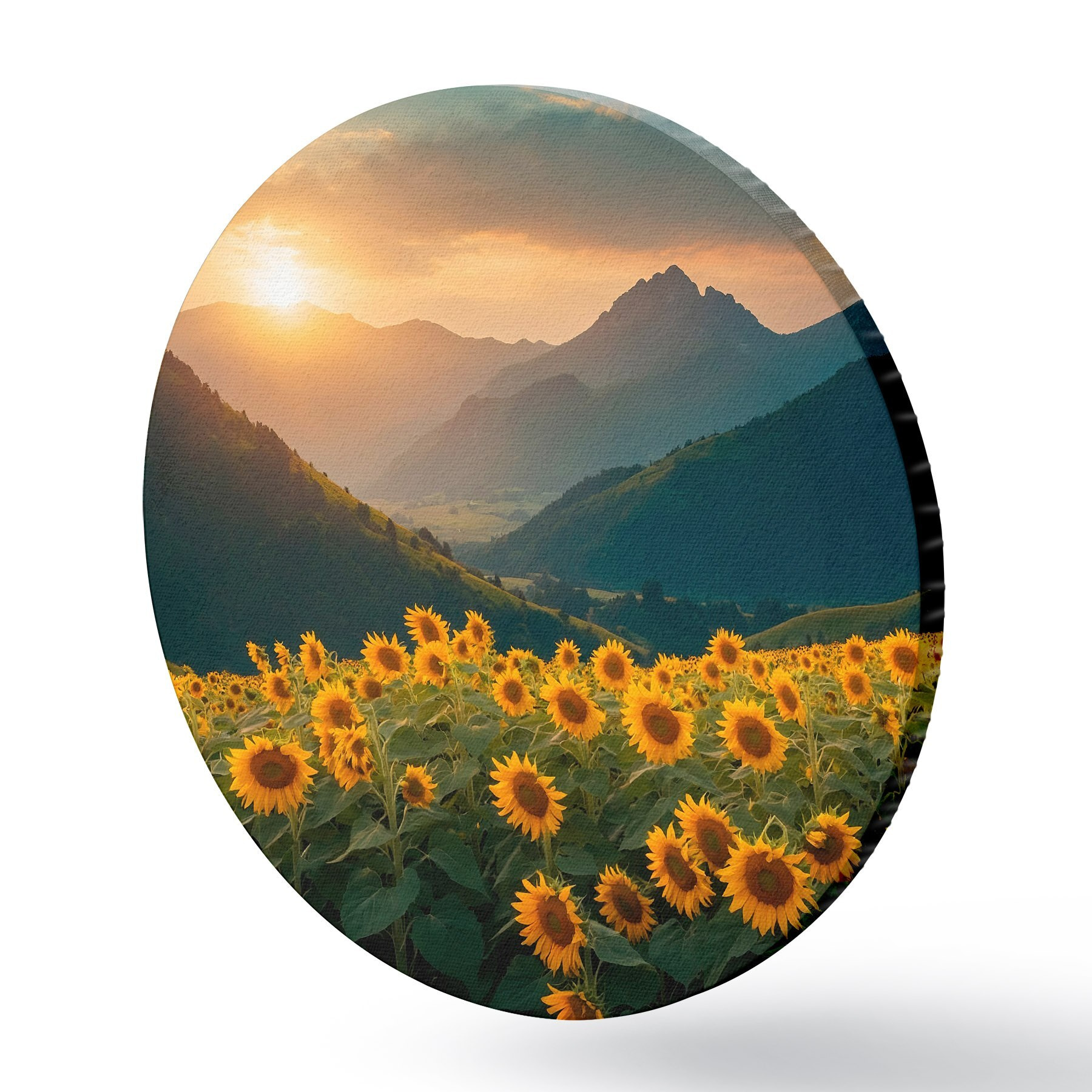 Quadri rotondi Girasoli sullo sfondo delle montagne r41049