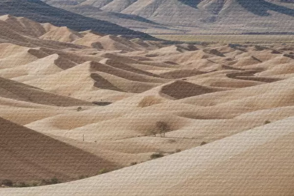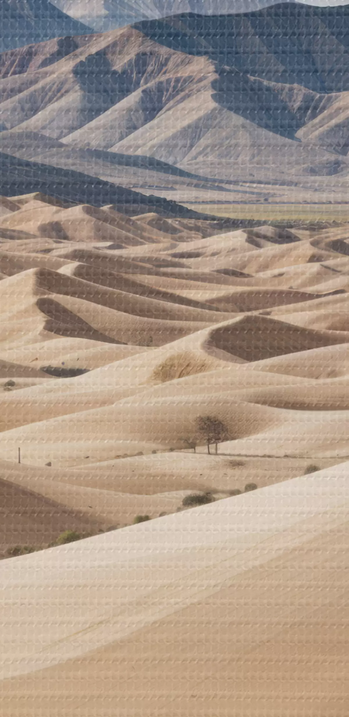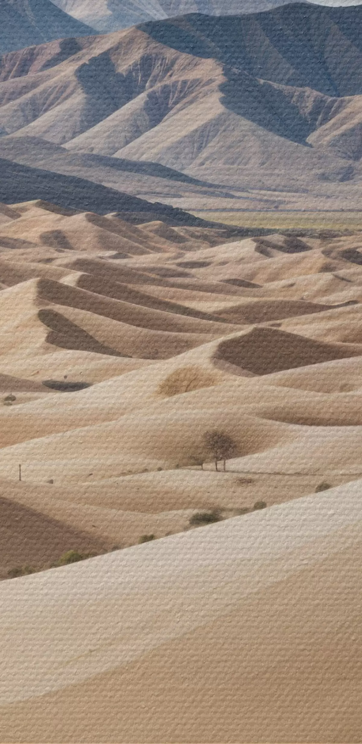 Immagine Un vasto paesaggio desertico con dune ondulate, aspre montagne in lontananza e un drammatico cielo nuvoloso Nr r41089