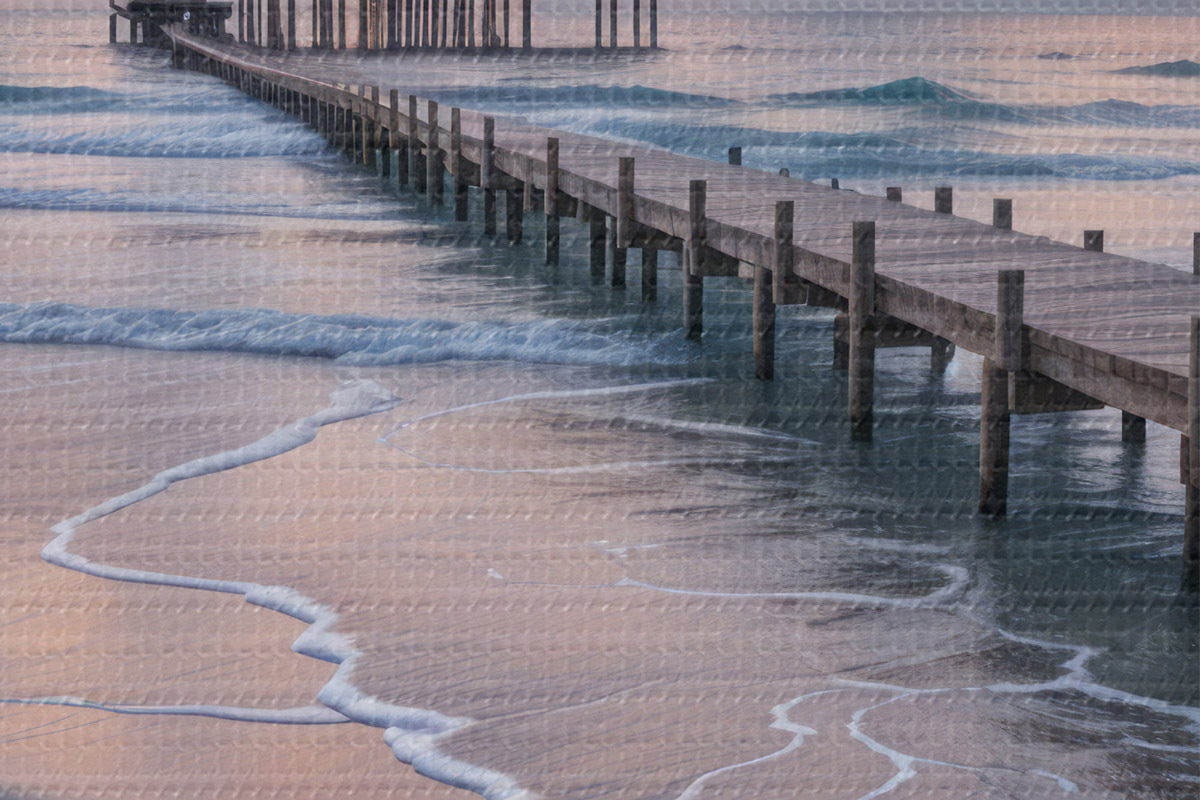 Immagine Molo di legno che si affaccia sull'oceano calmo al tramonto con nuvole colorate Nr r41091