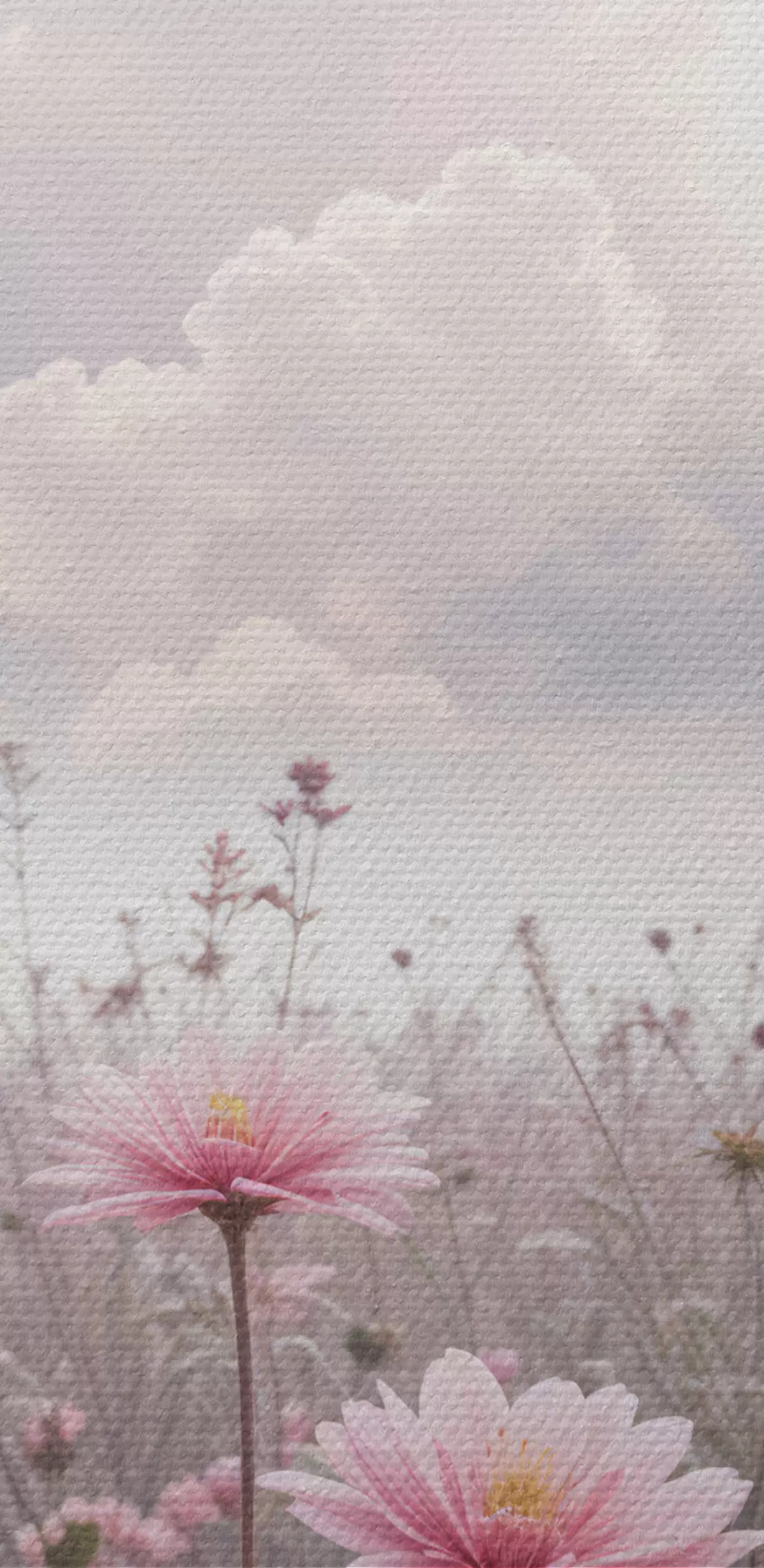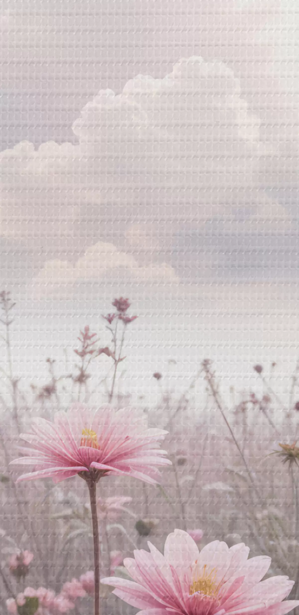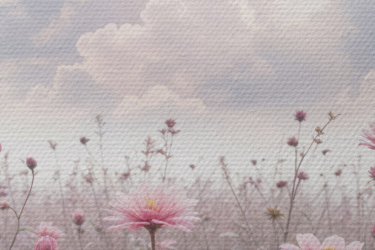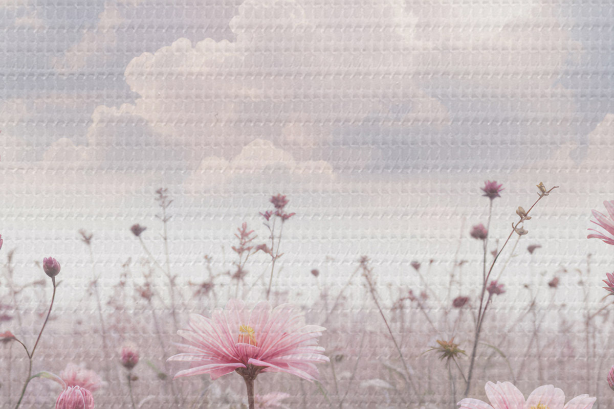Immagine Un campo di fiori di margherite rosa contro un cielo nuvoloso Nr r41102