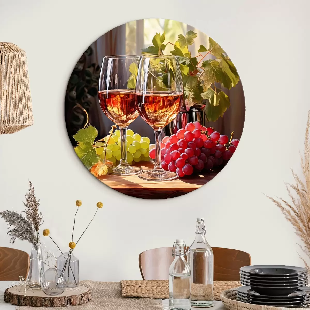Quadri rotondi bicchieri di vino e uva, natura morta r41105