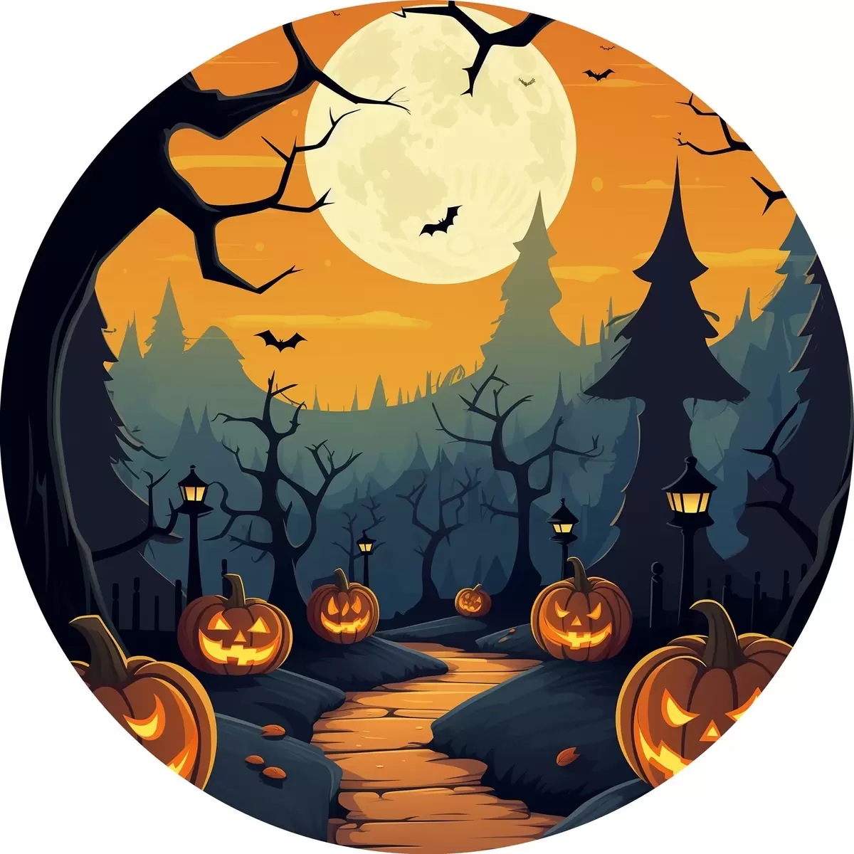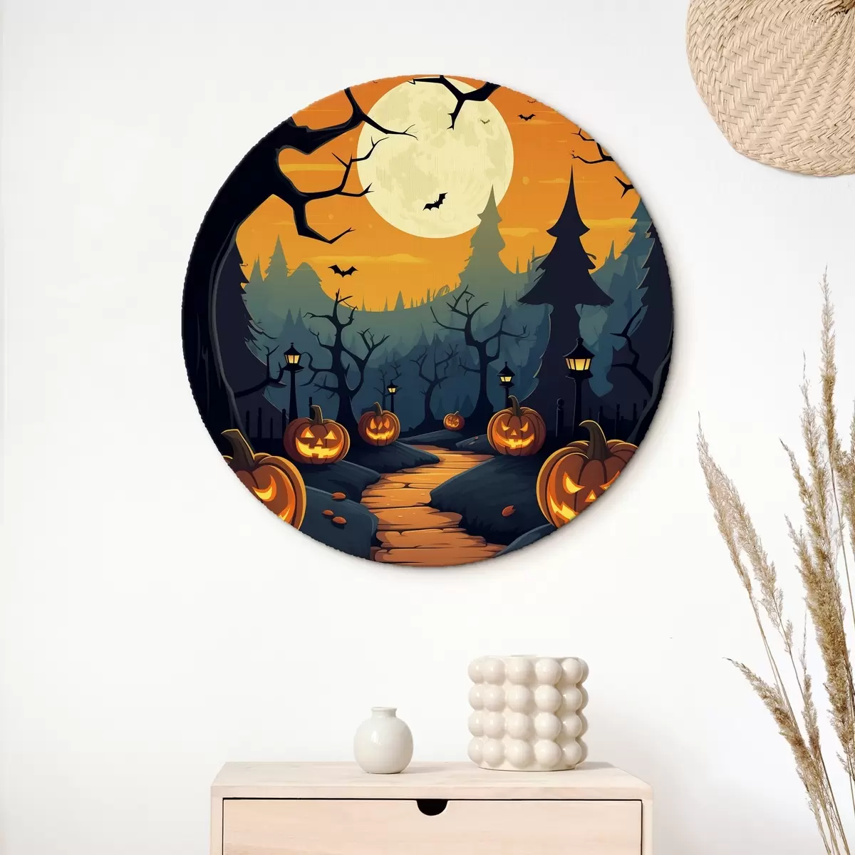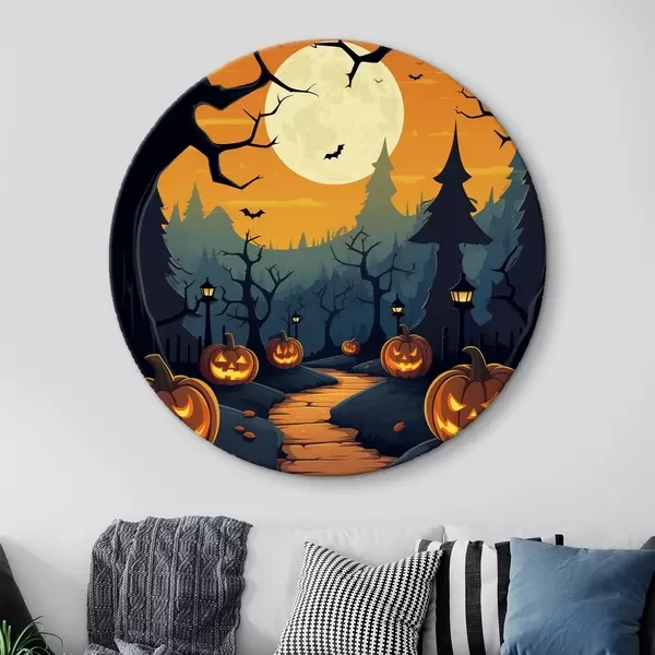 Quadri rotondi Halloween, sentiero nel bosco r41135