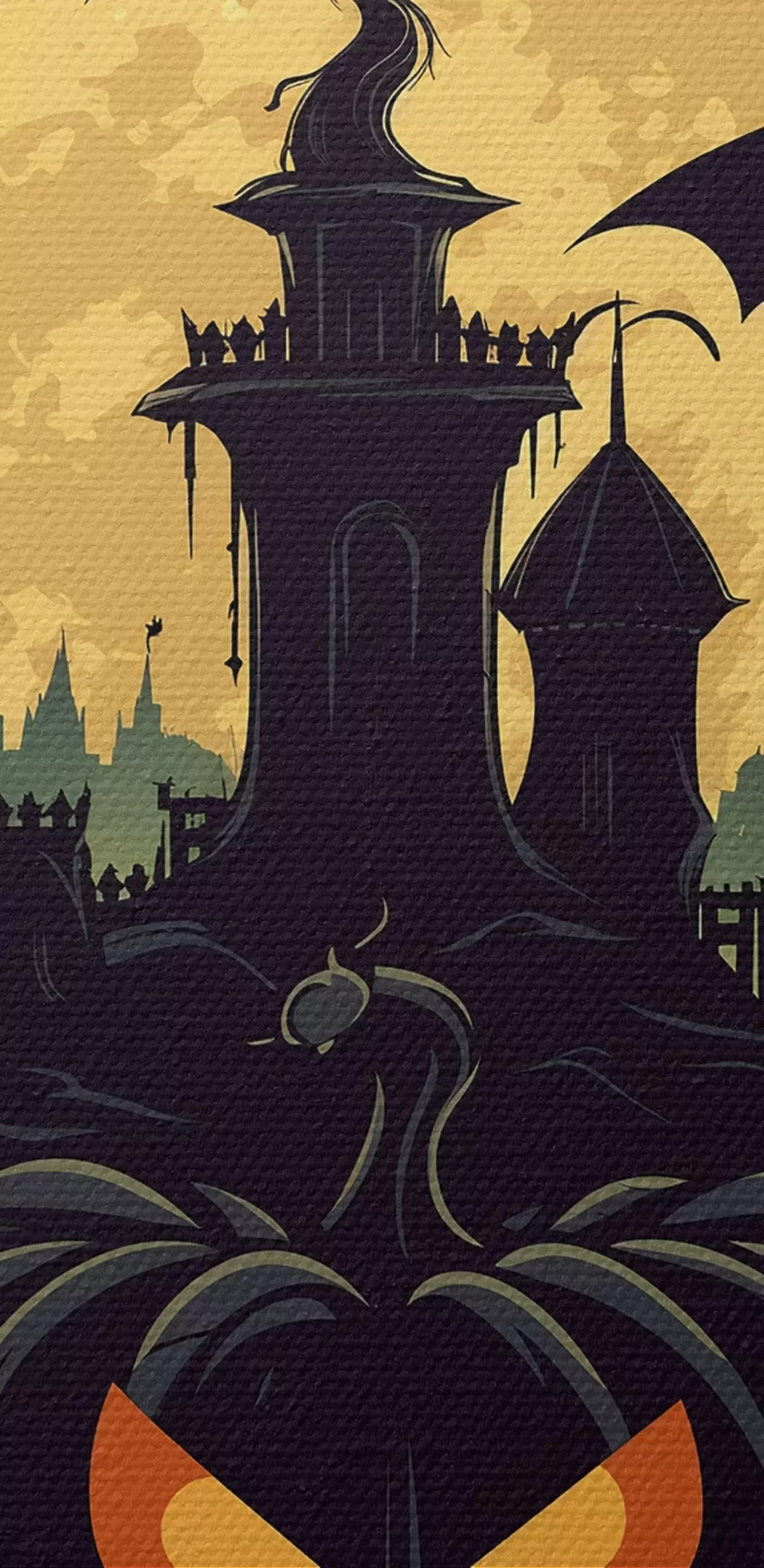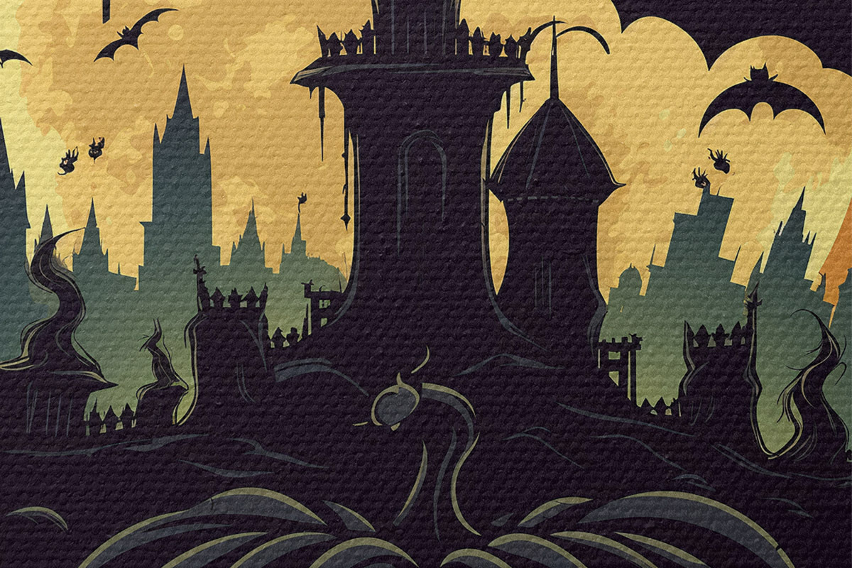 Immagine Halloween, castello sullo sfondo della luna piena, pipistrelli e zucche Nr r41138