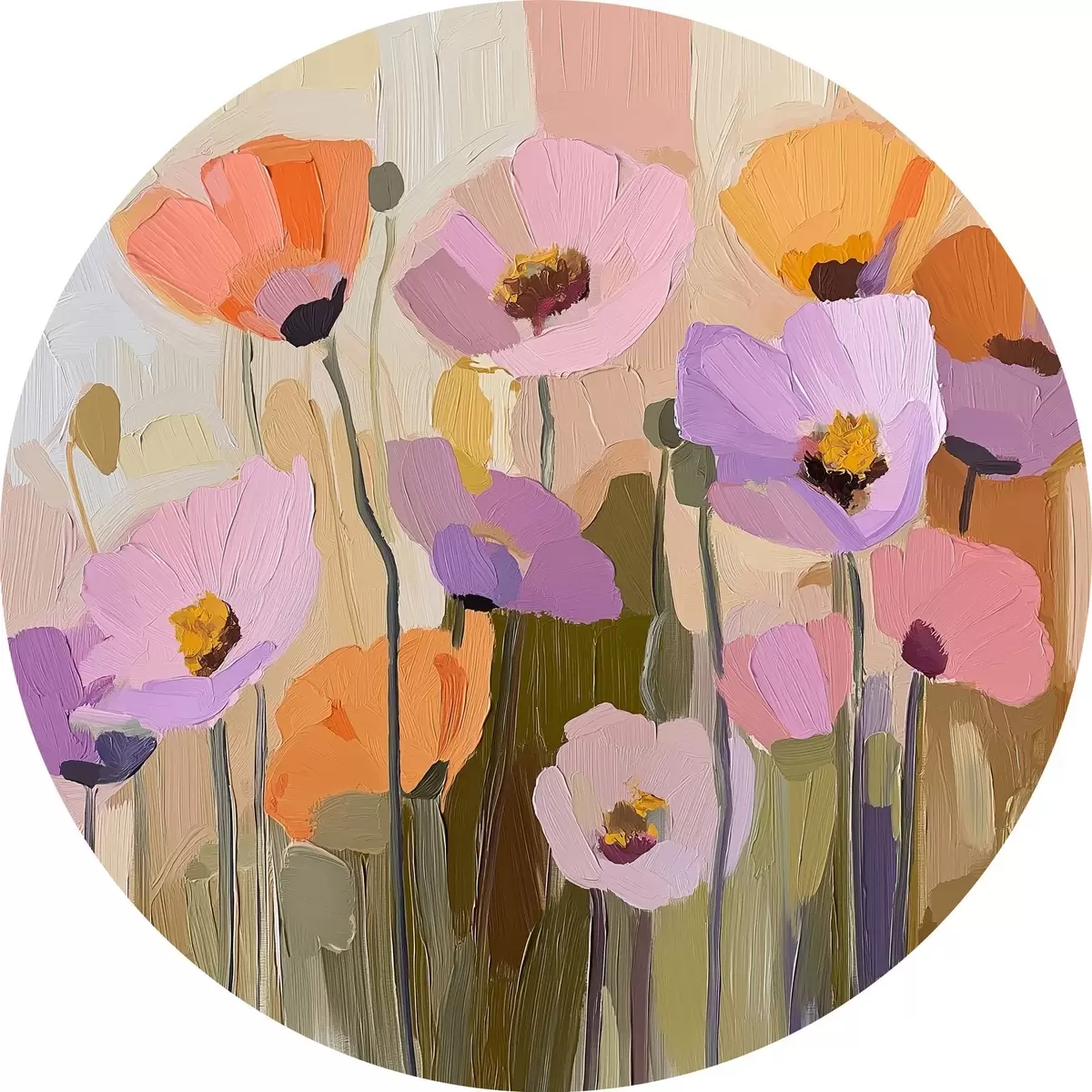 Quadri rotondi Un dipinto in acrilico raffigurante papaveri autunnali r41158