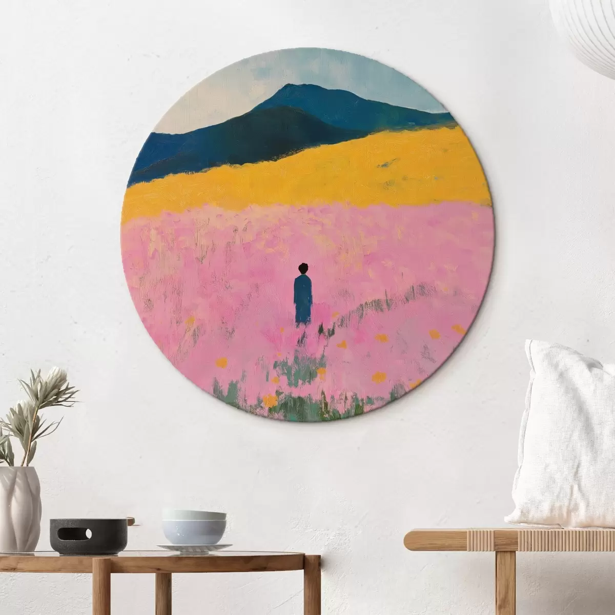 Quadri rotondi Uomo in un campo con fiori rosa r41164