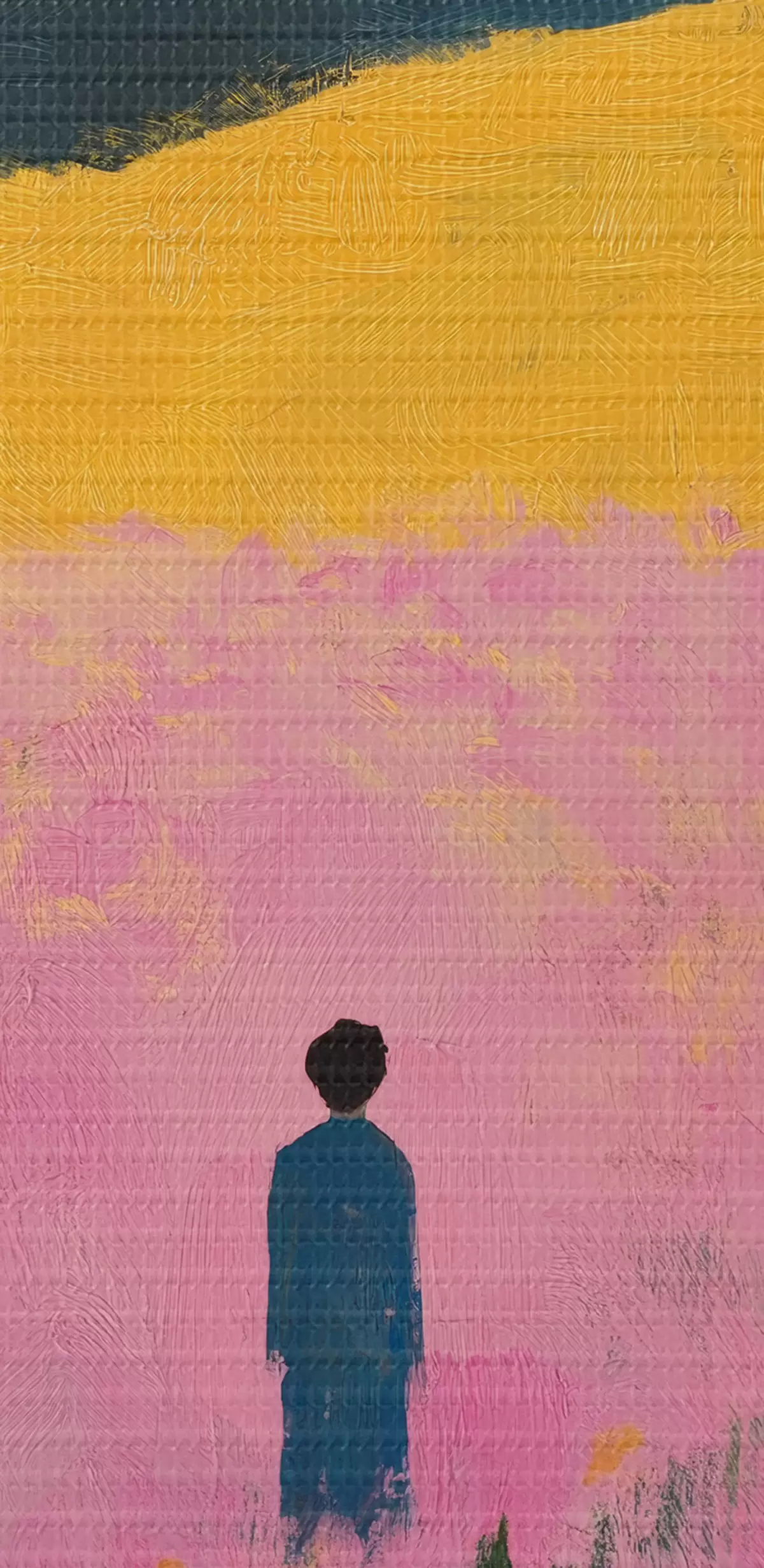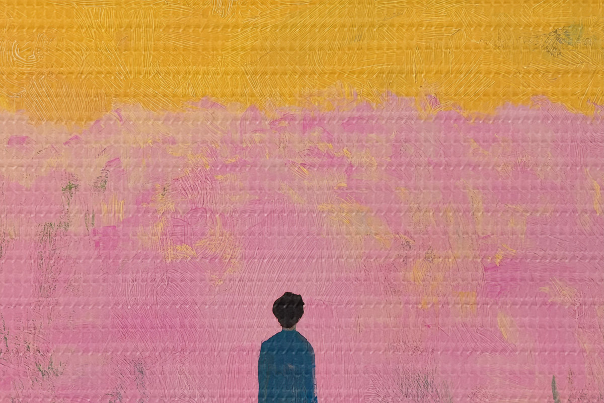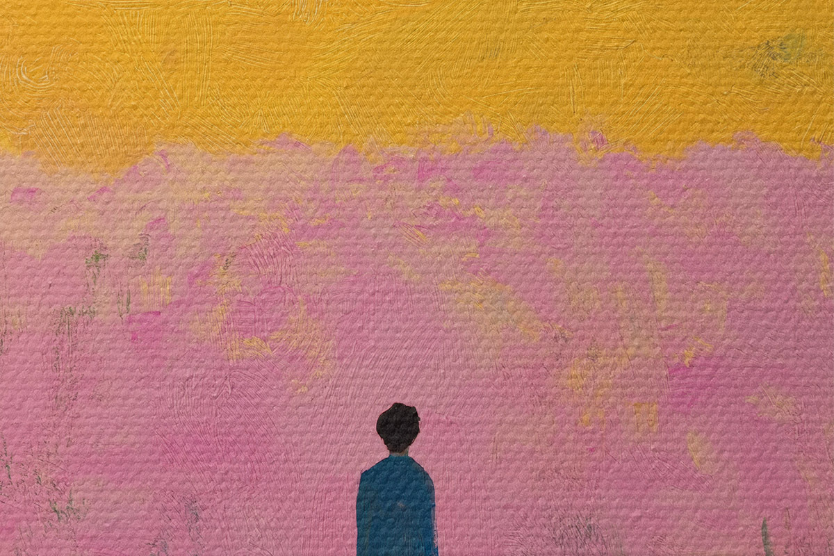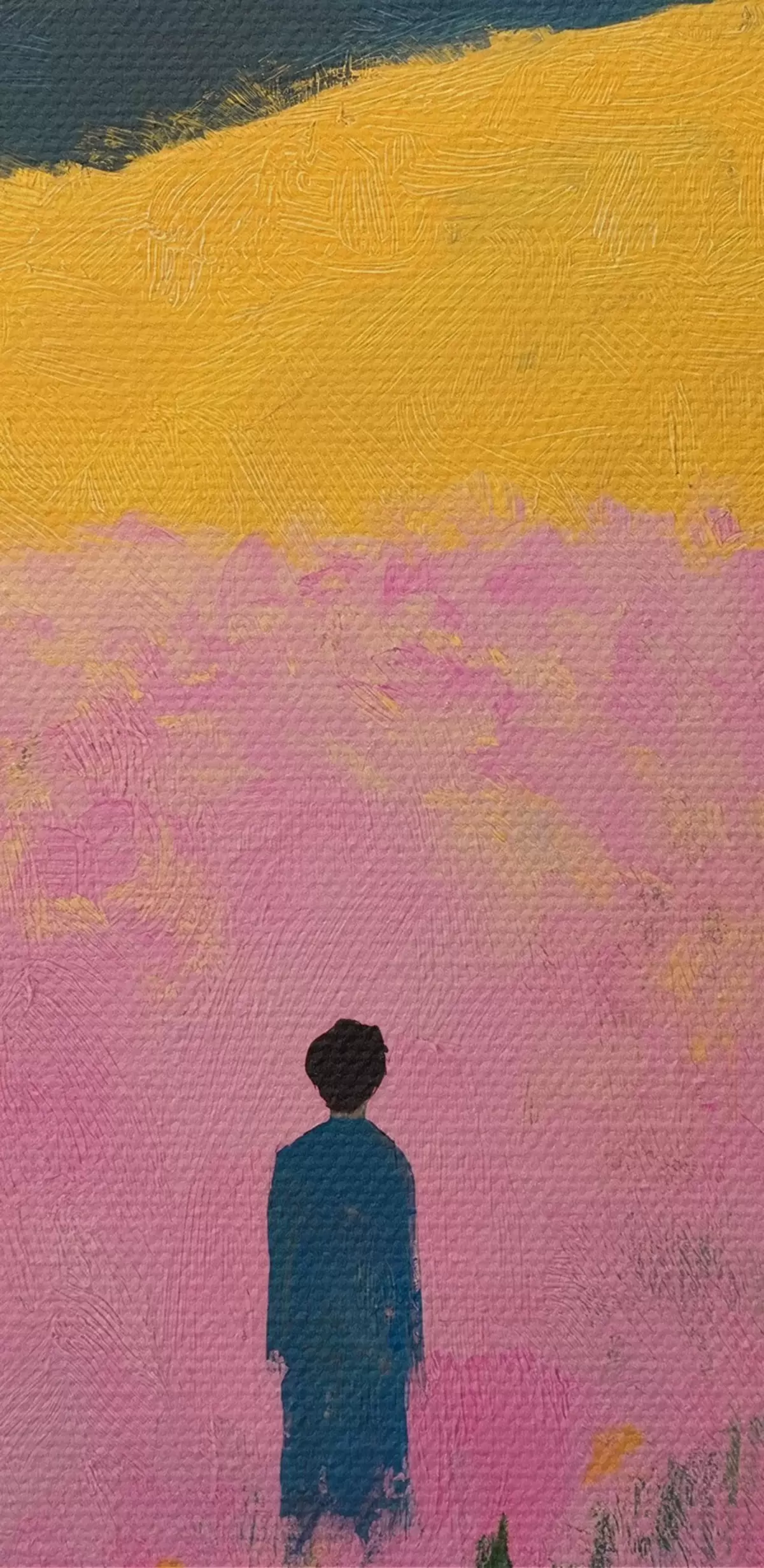 Immagine Uomo in un campo con fiori rosa Nr r41164