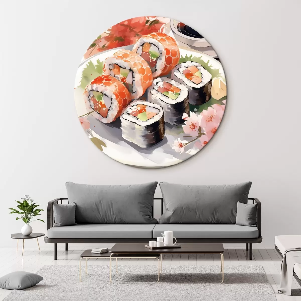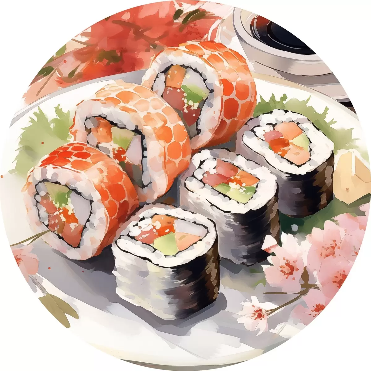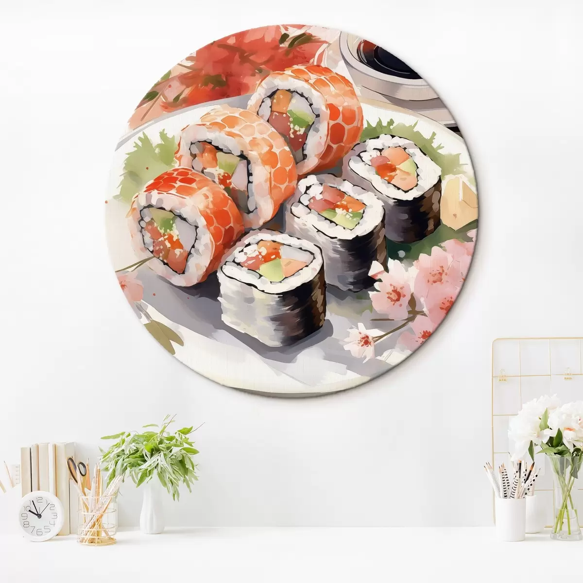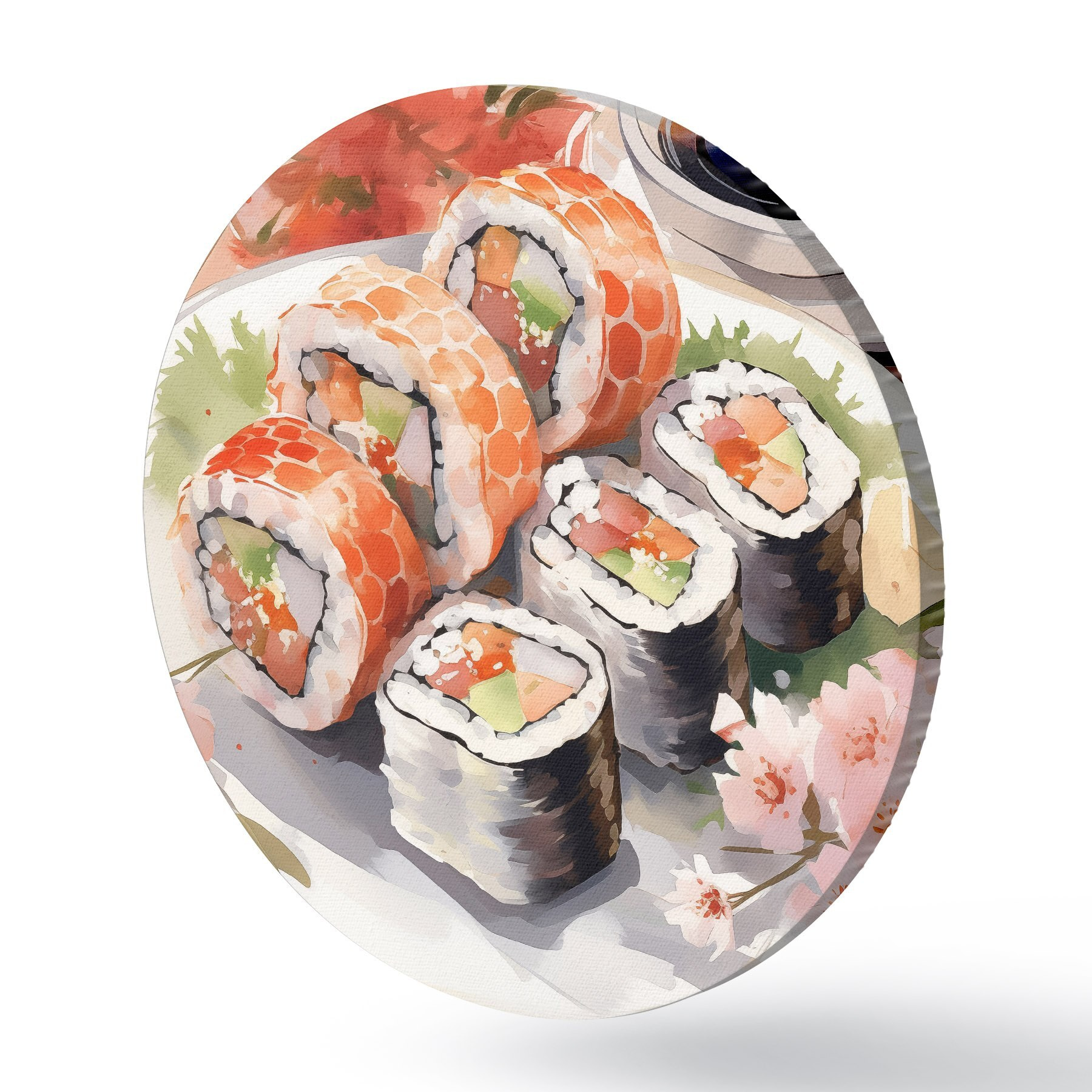 Quadri rotondi Sushi su un piatto, acquerello, floreale, giapponese r41179